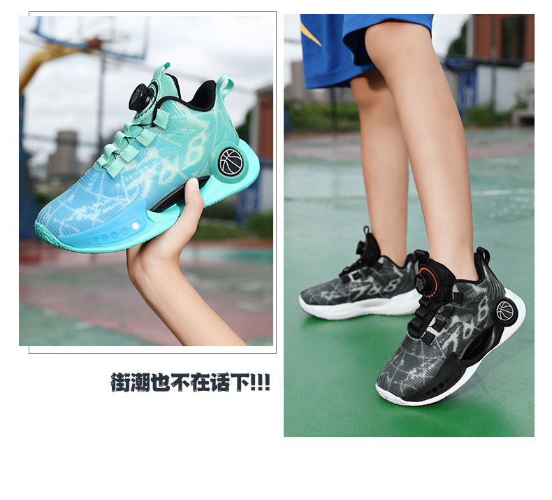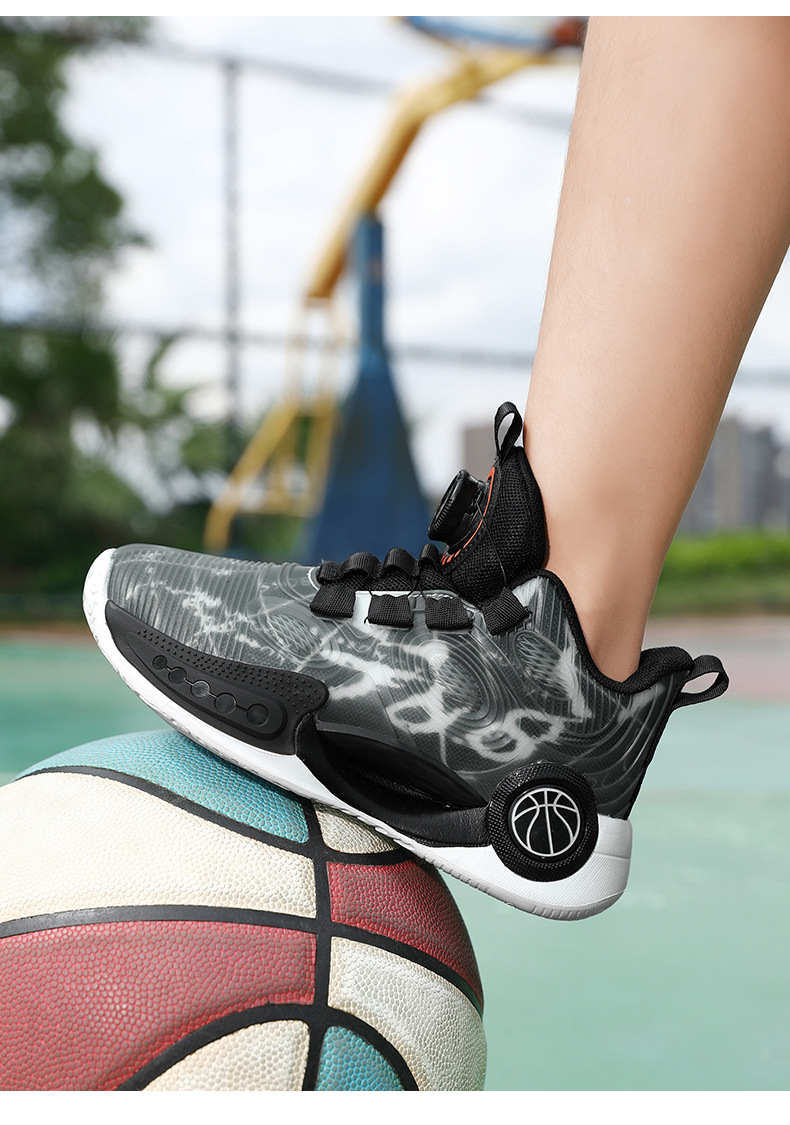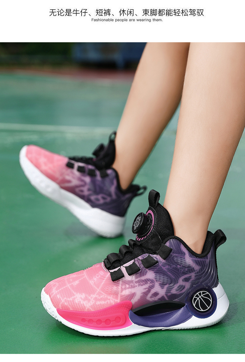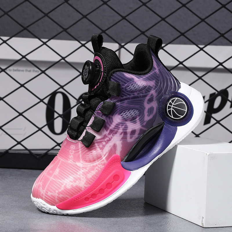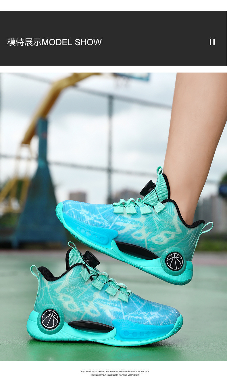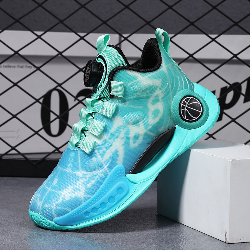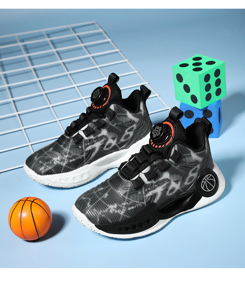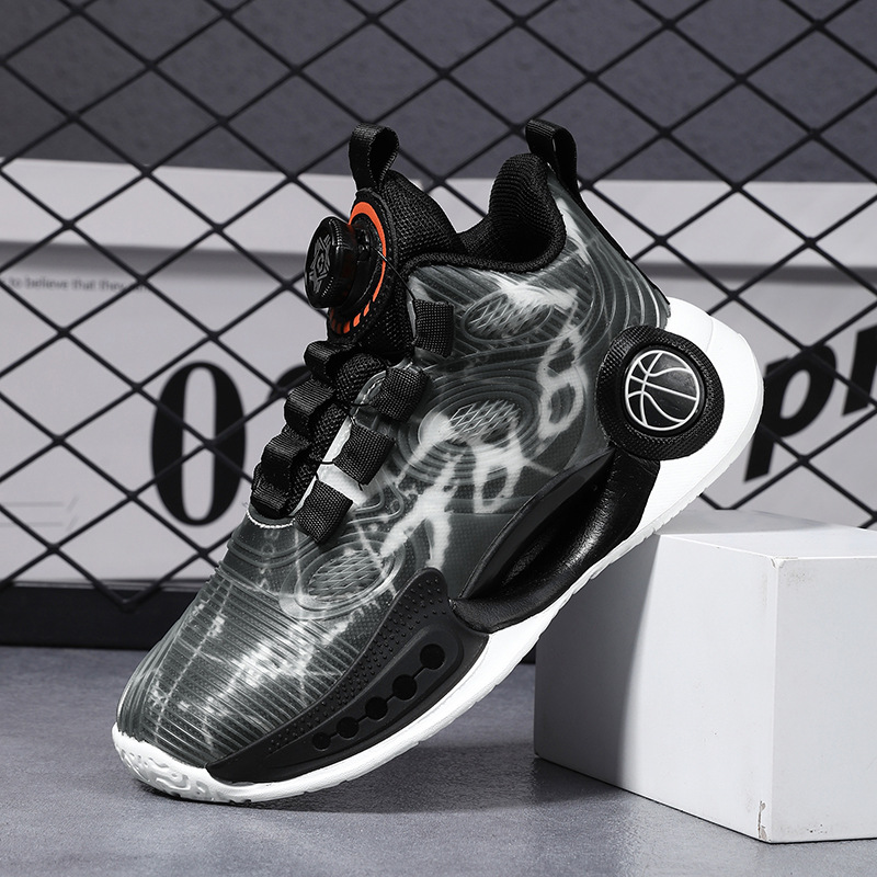 어린이 농구 신발 2024 봄과 가을 새로운 회전 버튼 소년 운동화 중형 및 큰 어린이 충격 흡수 전투 운동화
