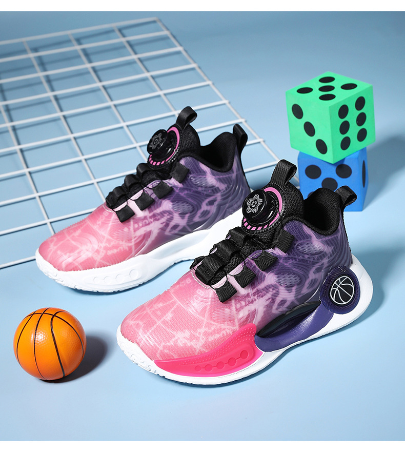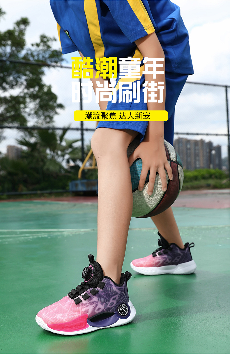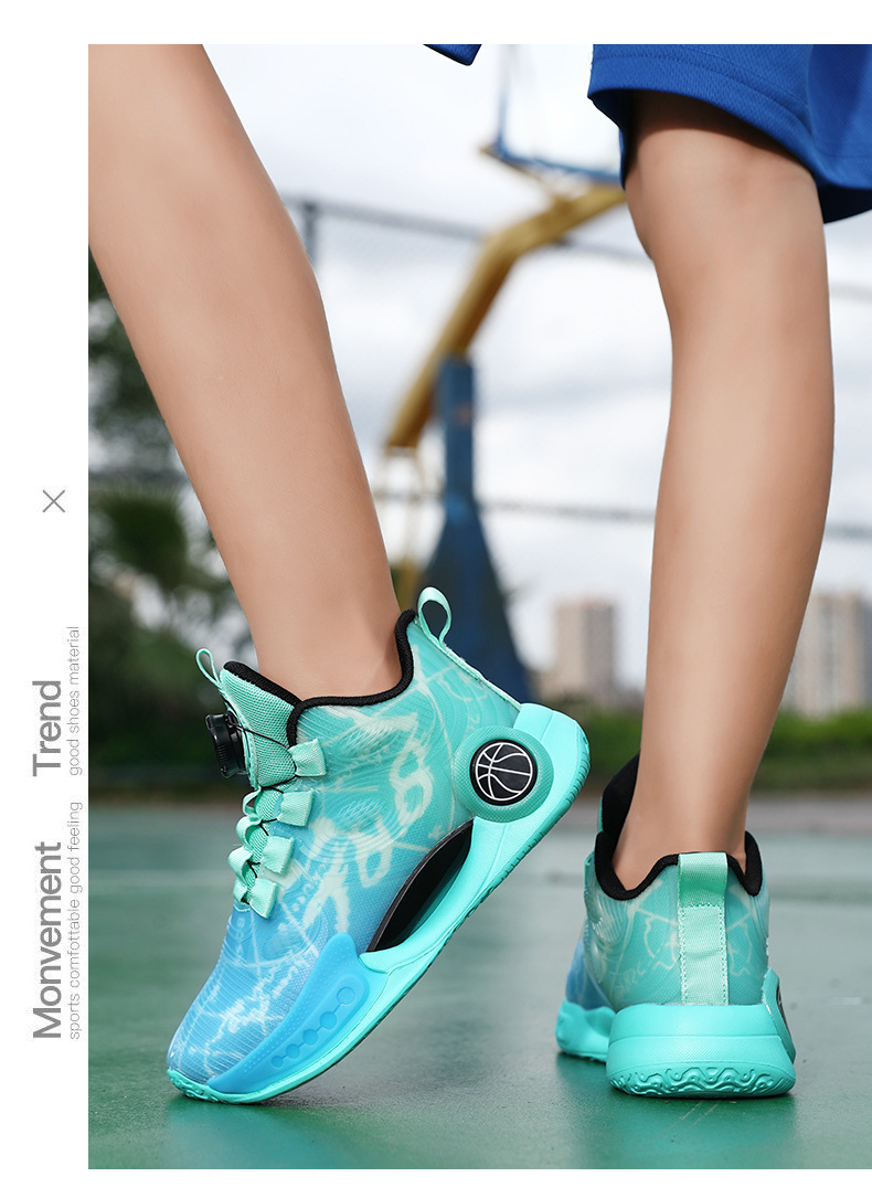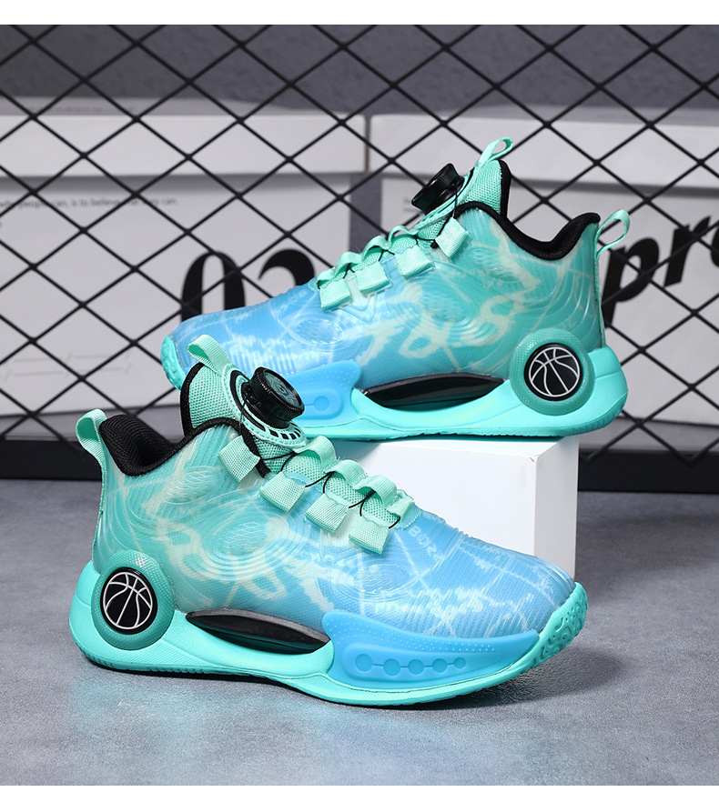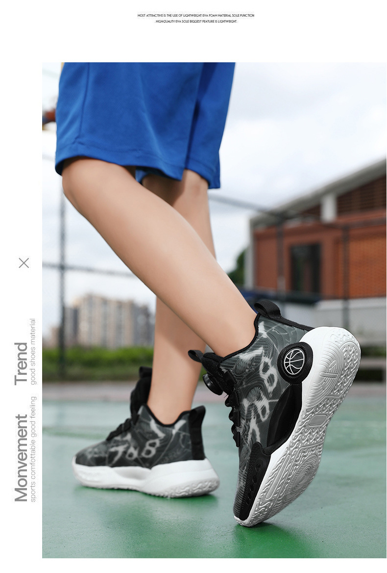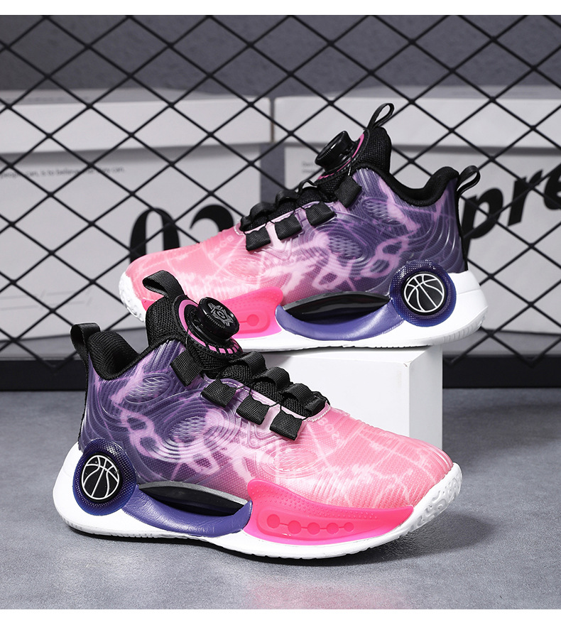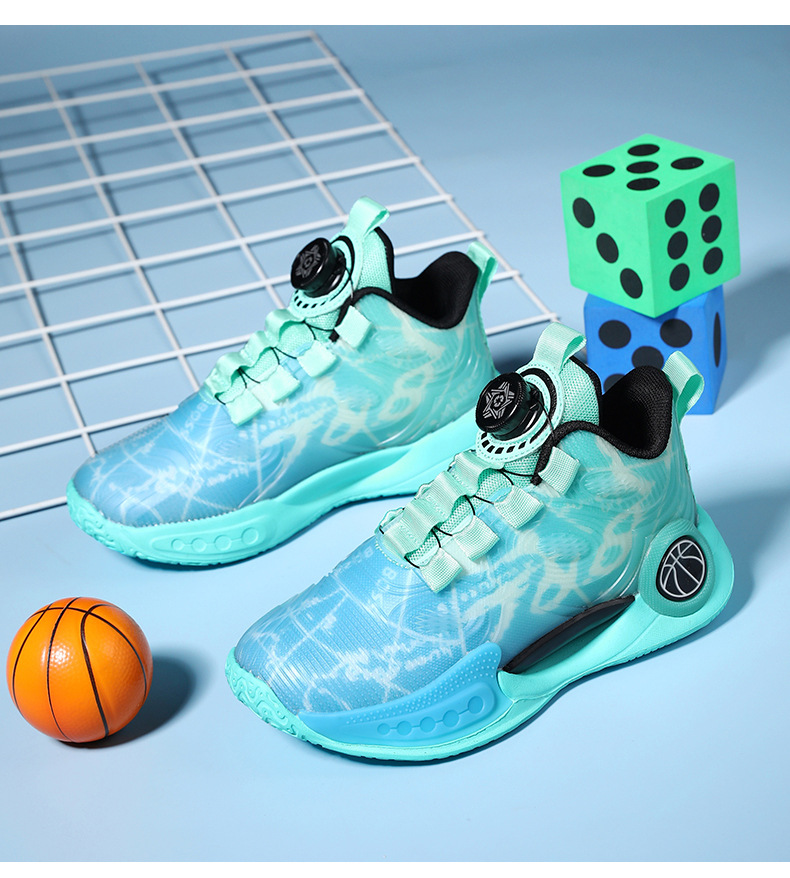 어린이 농구 신발 2024 봄과 가을 새로운 회전 버튼 소년 운동화 중형 및 큰 어린이 충격 흡수 전투 운동화