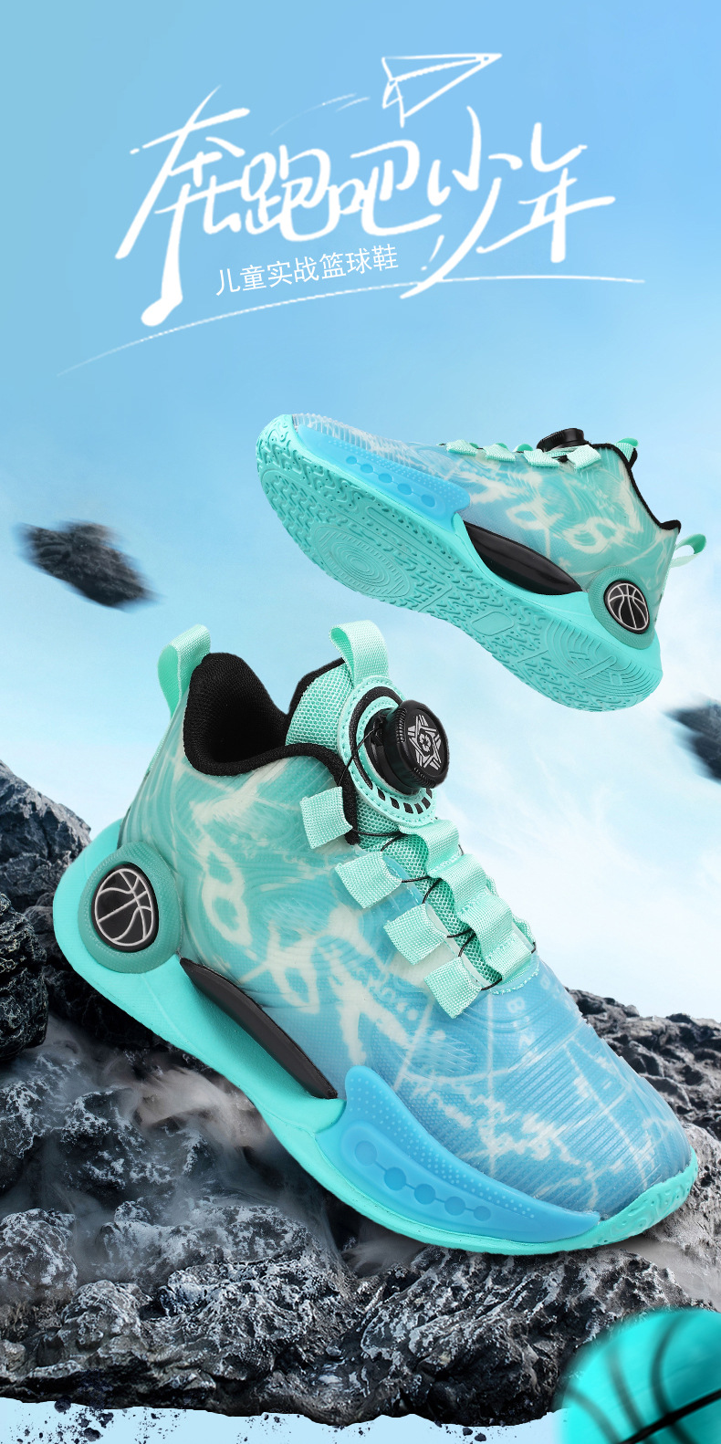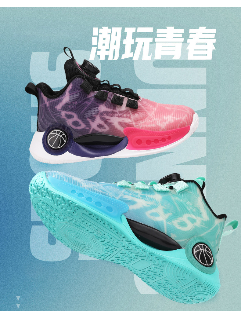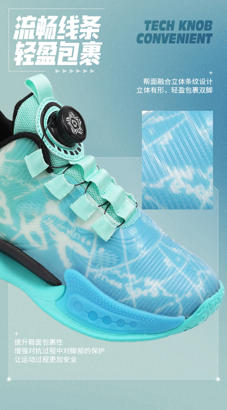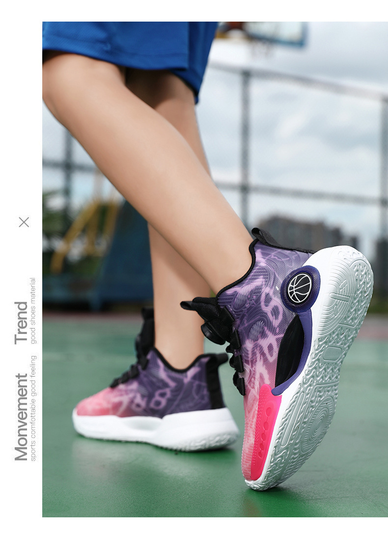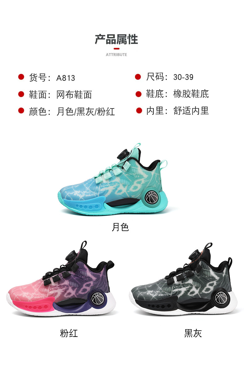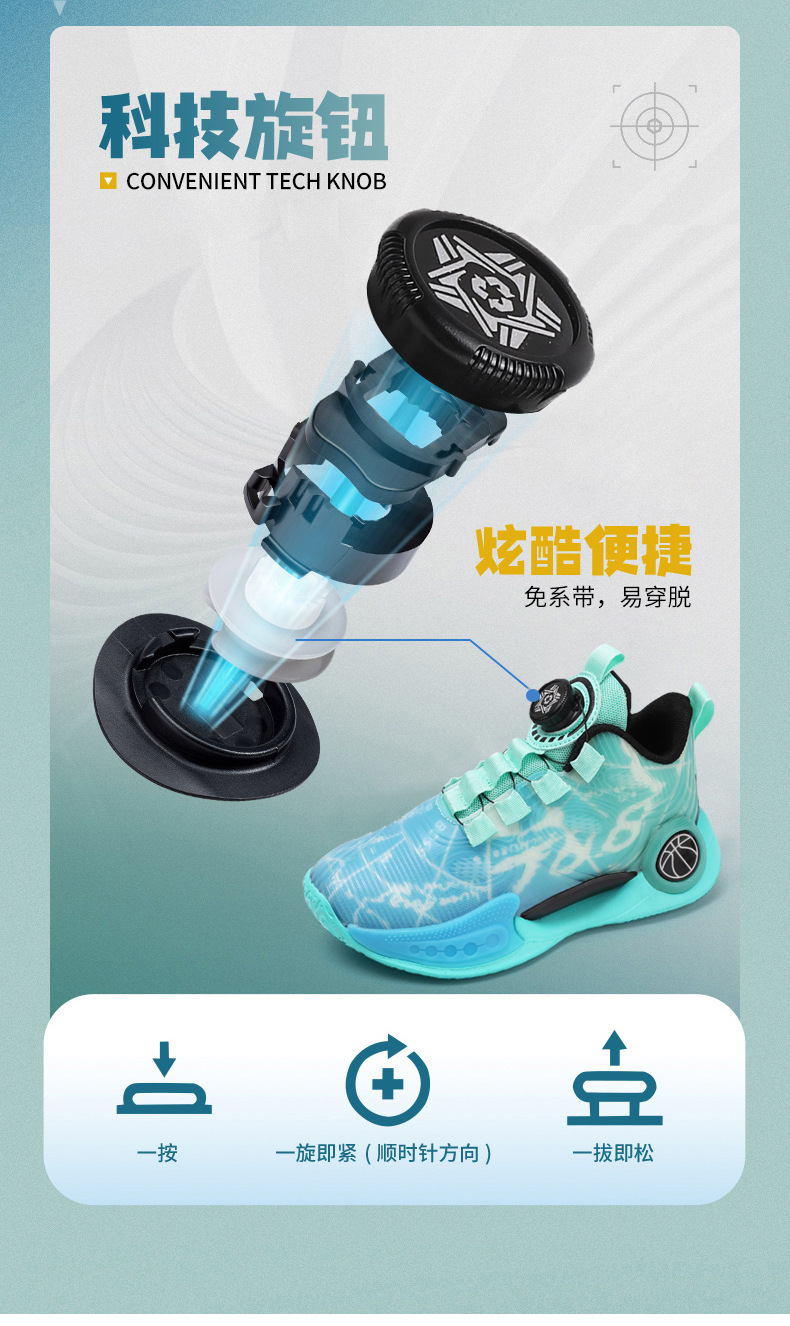 어린이 농구 신발 2024 봄과 가을 새로운 회전 버튼 소년 운동화 중형 및 큰 어린이 충격 흡수 전투 운동화