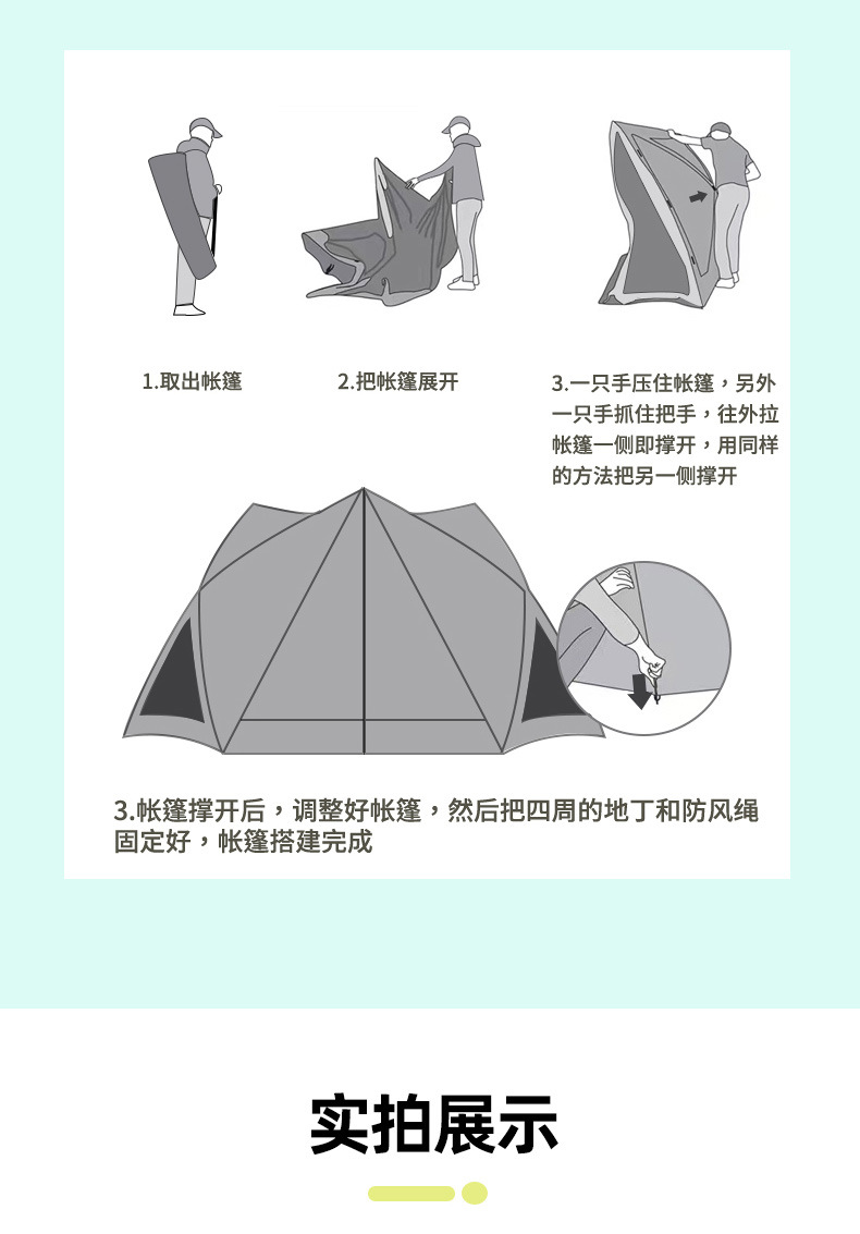 여름 해변 공원 야외 휴대용 접이식 자동 텐트 캠핑 장비 풀세트 차양 캠핑