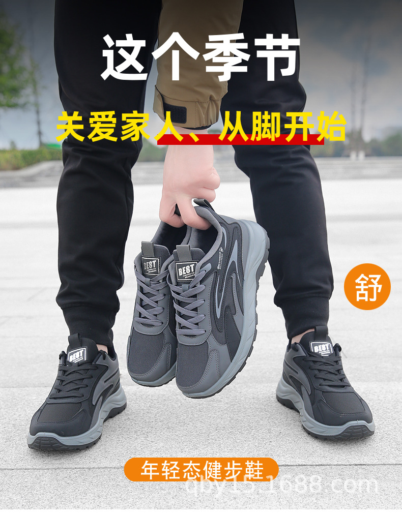 중년 및 노인 남성 워킹 신발 미끄럼 방지 부드러운 바닥 노인 신발 편안한 통기성 경량 여행 아빠 메쉬 운동화