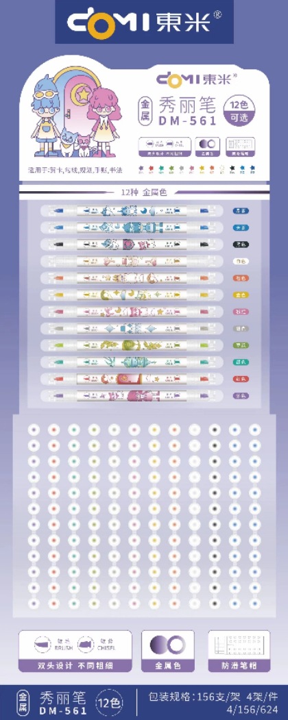동미 561 양두 뷰티 펜 메탈 컬러 저널 펜 소프트 헤드 소프트 도끼 후크 펜 인사말 카드 그림 저널 컬러 펜