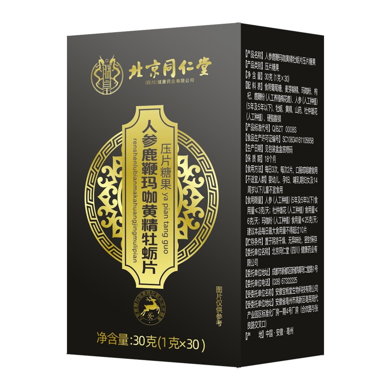 베이징 Tongrentang 인삼 사슴 채찍 마카 고분자 에센스 굴 정제 성인 남성 Wolfberry Eucommia 남성 꽃약 도매스토어 가기