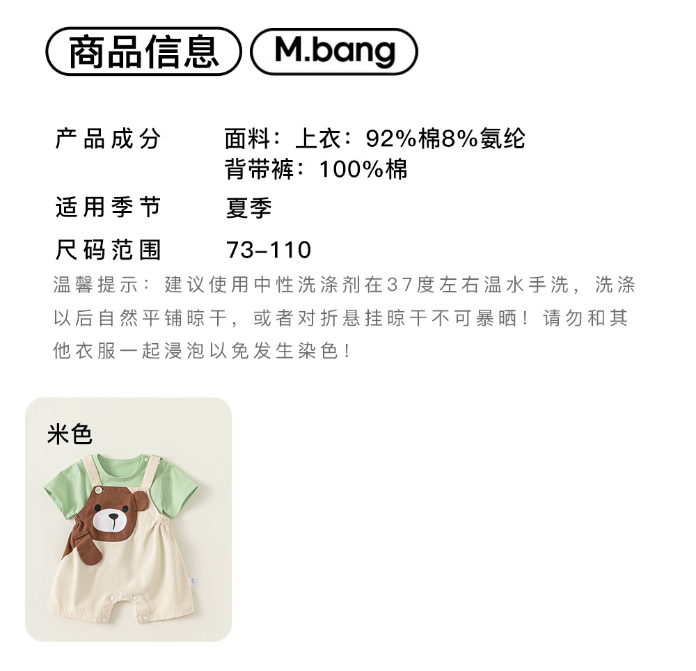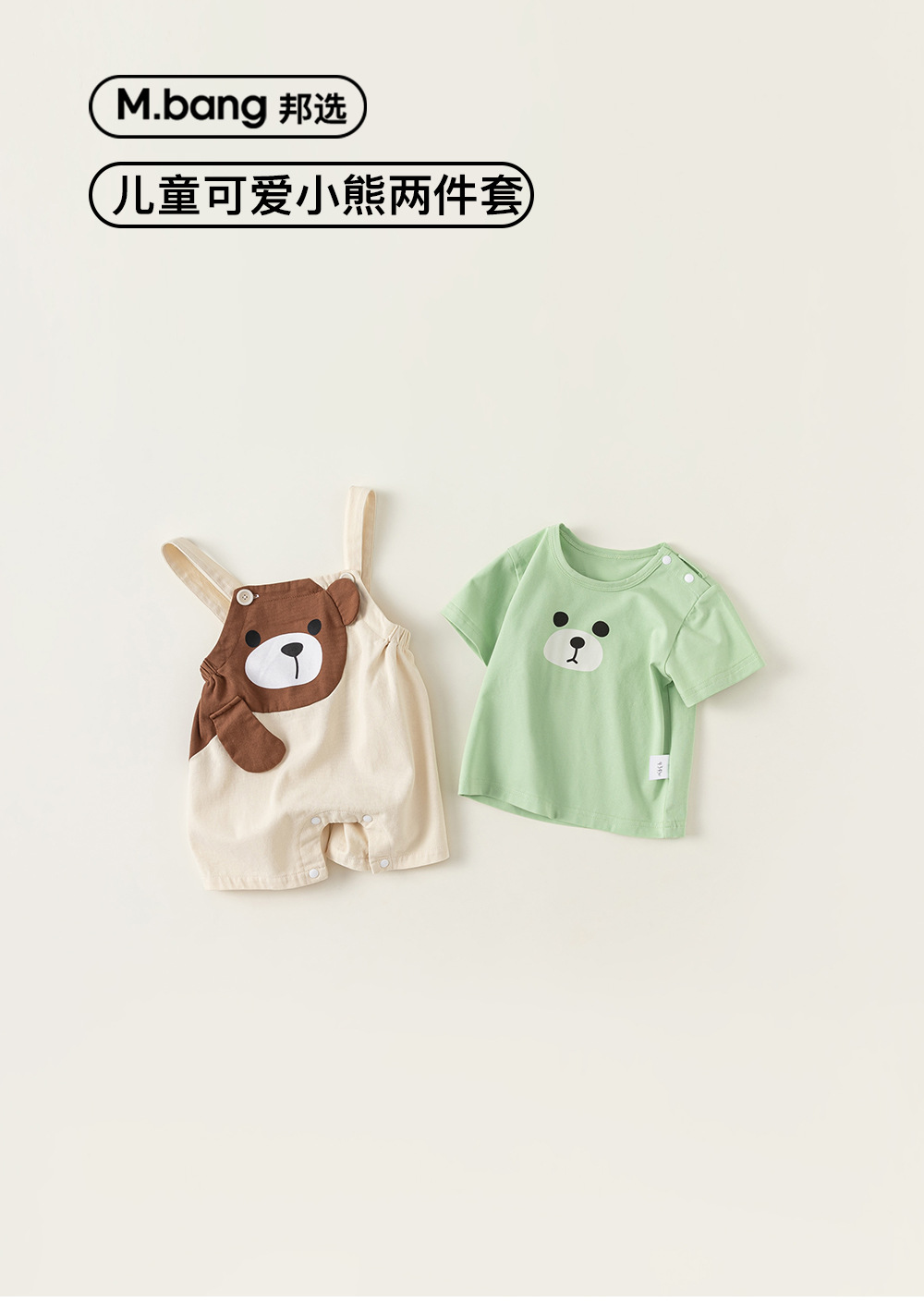 Bangxuan 남아 여름복 신상 아기 곰돌이 멜빵바지 투피스 유아 티셔츠 XT43430