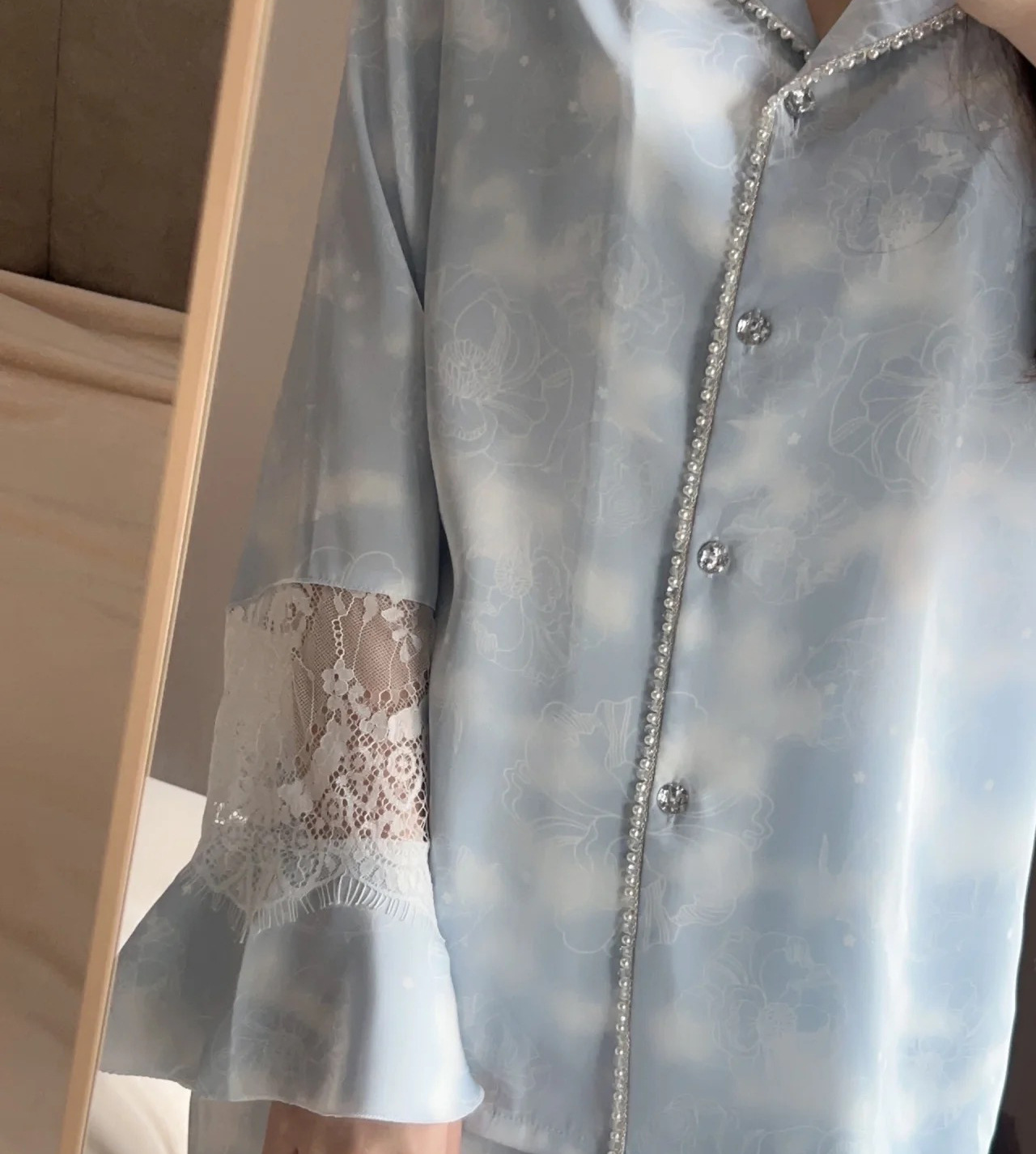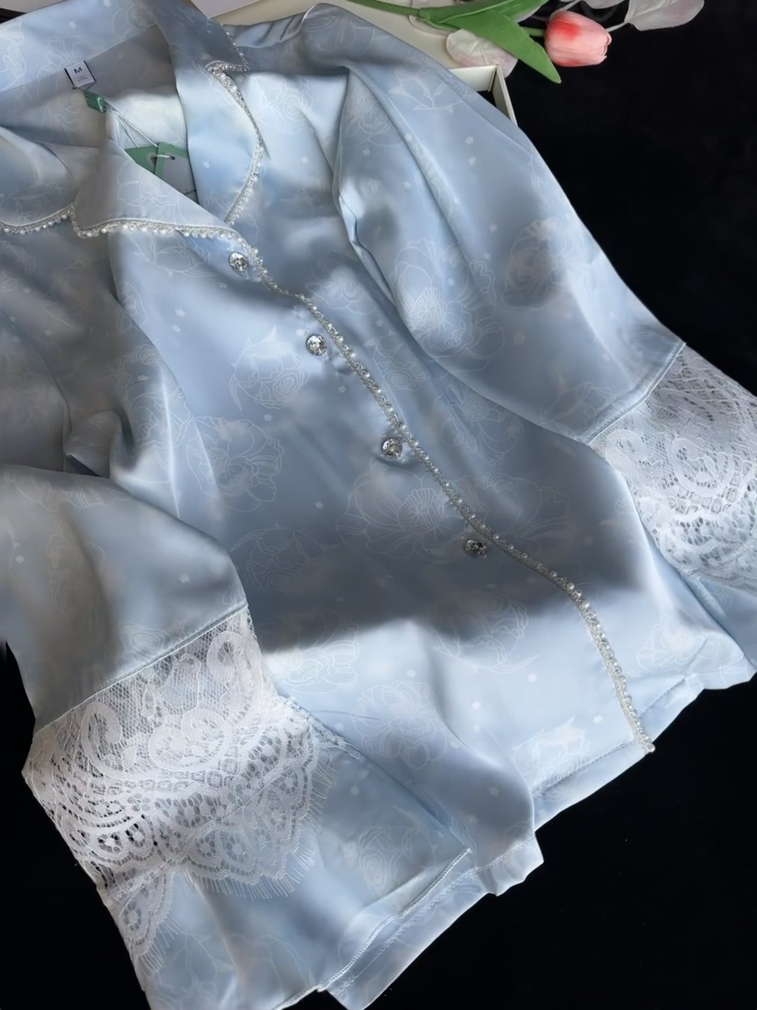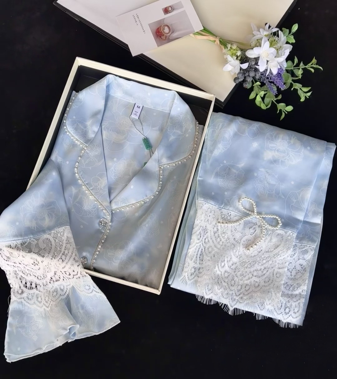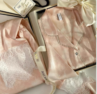 2024 요정 스타일 레이스 프랑스 홈웨어 새로운 잠옷 여성용 긴팔 바지 틈새 인터넷 레드 세트스토어 가기