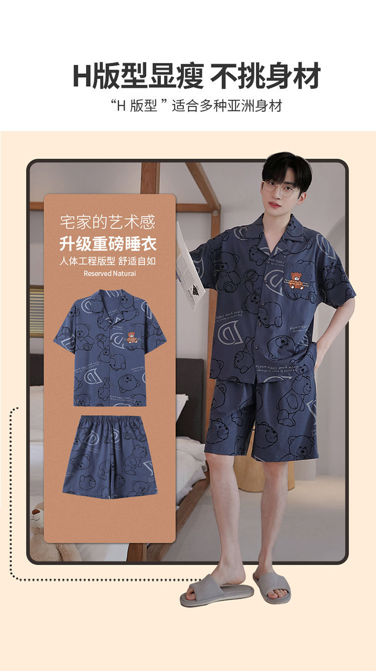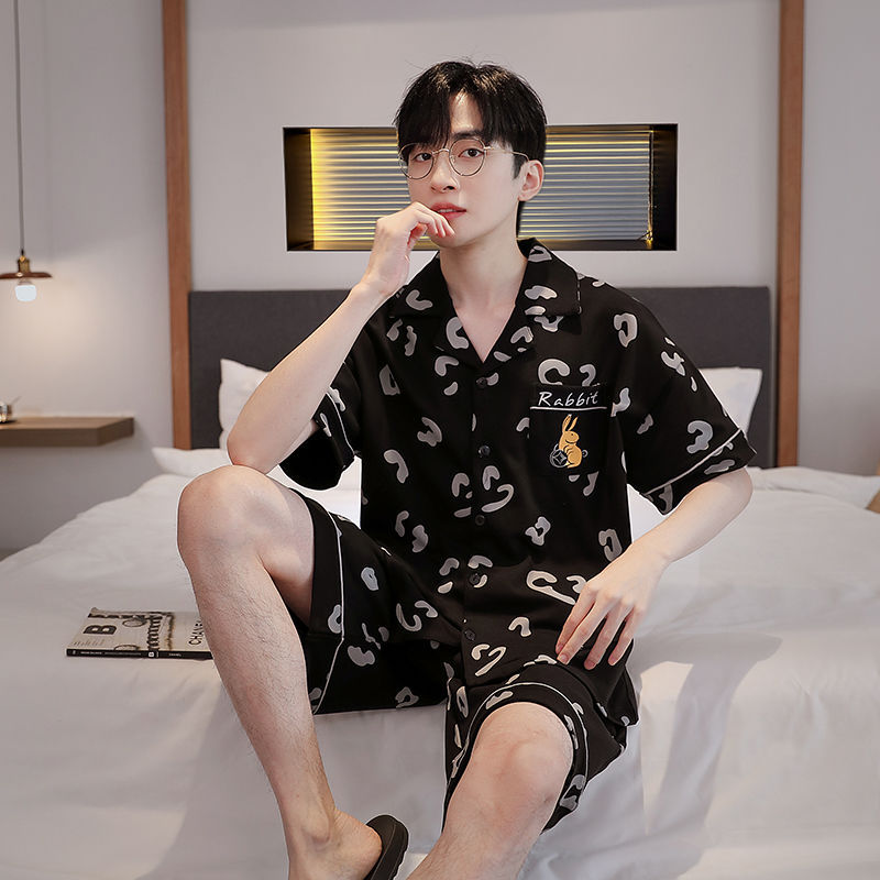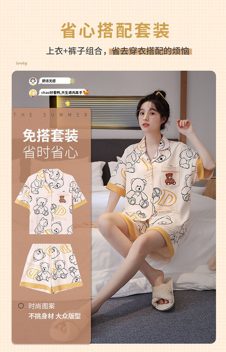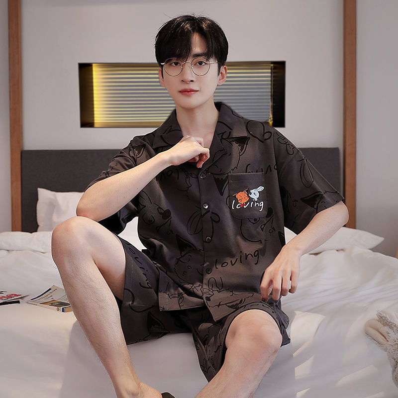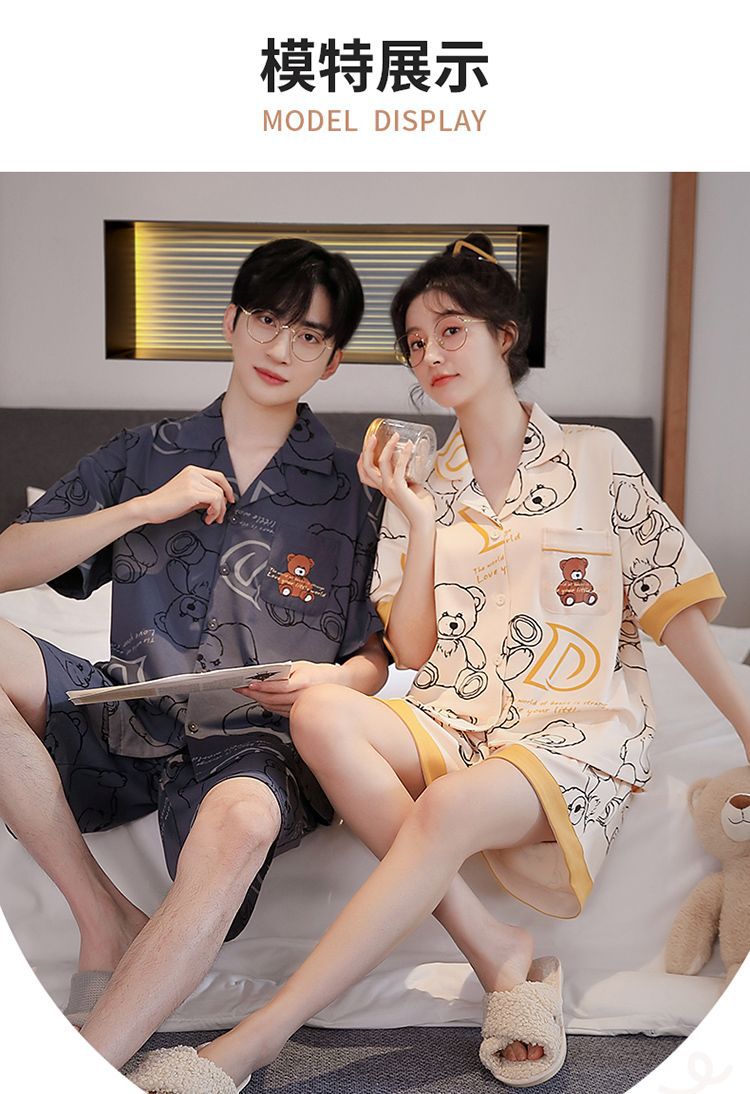 여름 카디건 커플 파자마 반팔 반바지 남성과 여성의 야외 홈 착용 세트 커플 셔츠 온라인 유명 인사 스타일스토어 가기