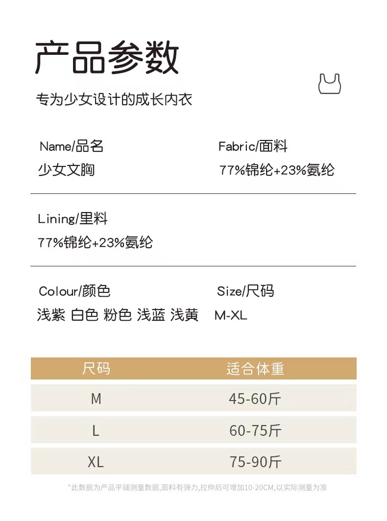 새로운 아이스 실크 개발 기간 초등학교 소녀 속옷 소녀의 브래지어 고정 컵 1 단 조끼