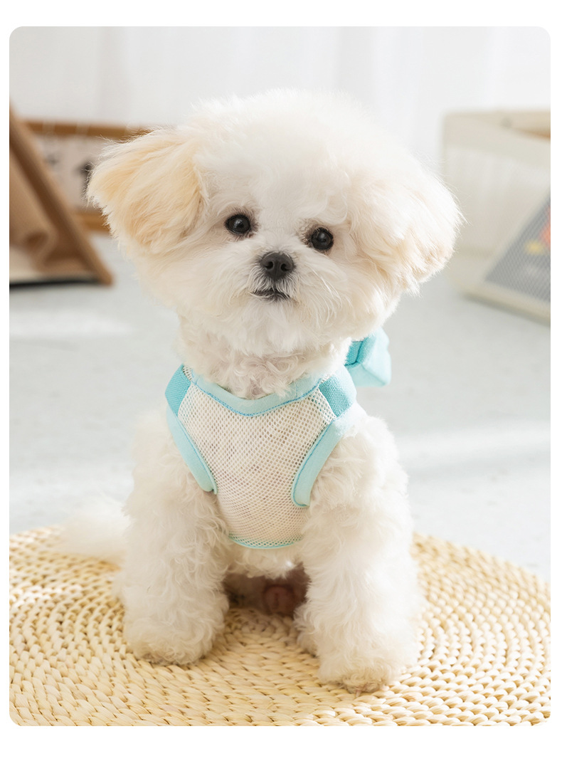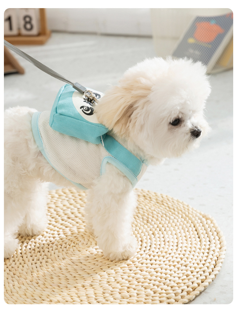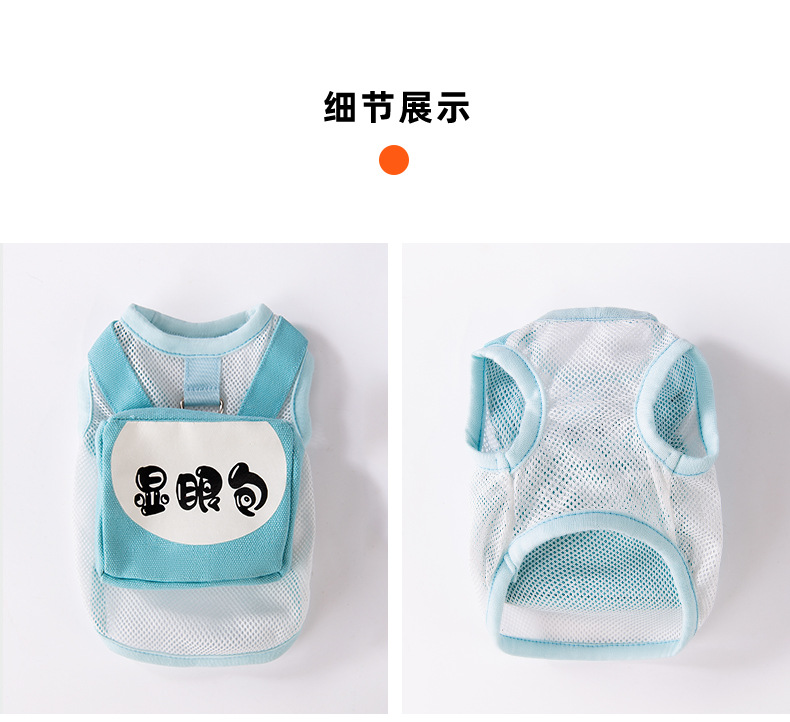 24 개의 새로운 견인 애완 동물 눈에 띄는 배낭 조끼 Bichon Schnauzer 작은 개 얇은 개 옷 봄과 여름스토어 가기