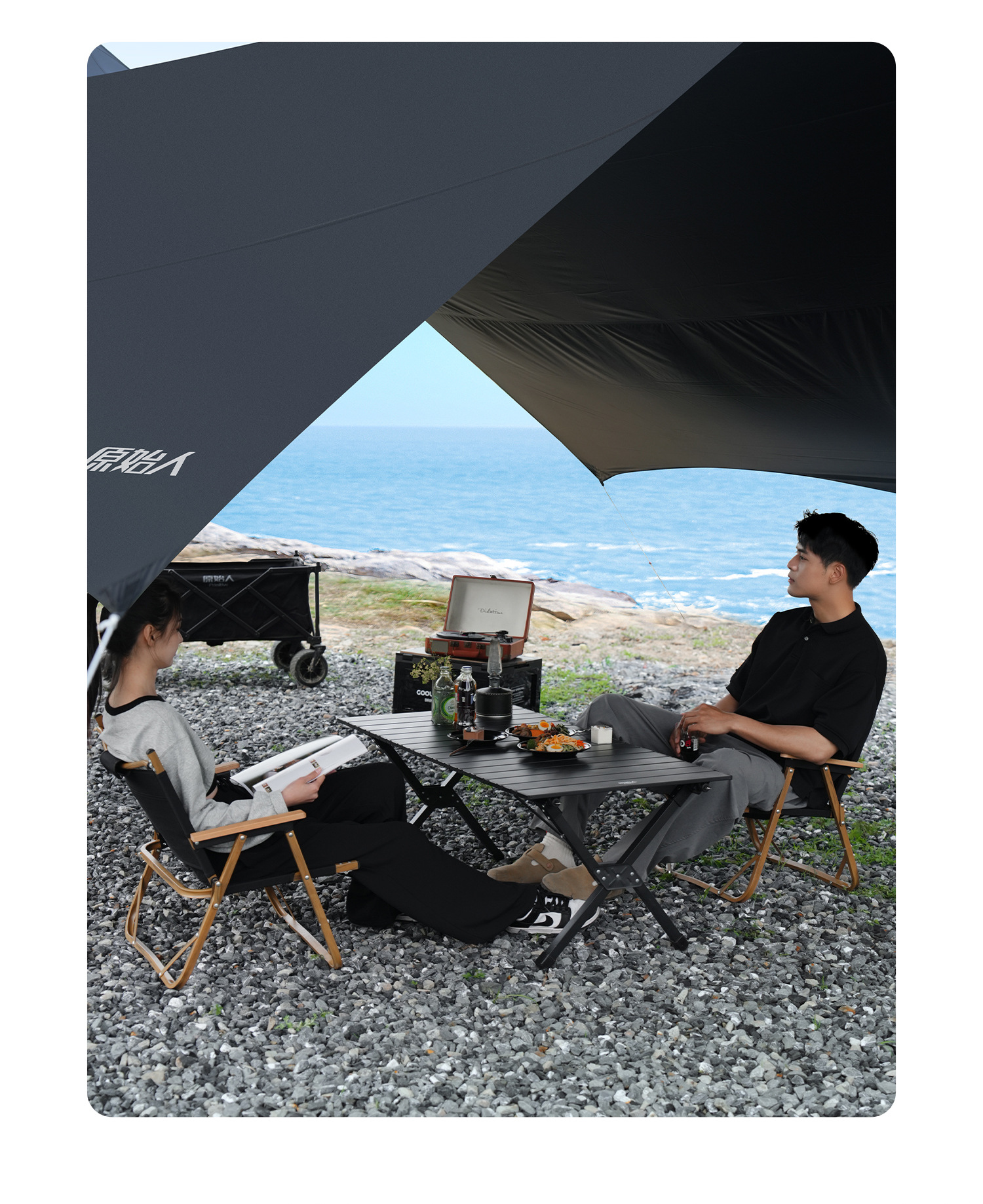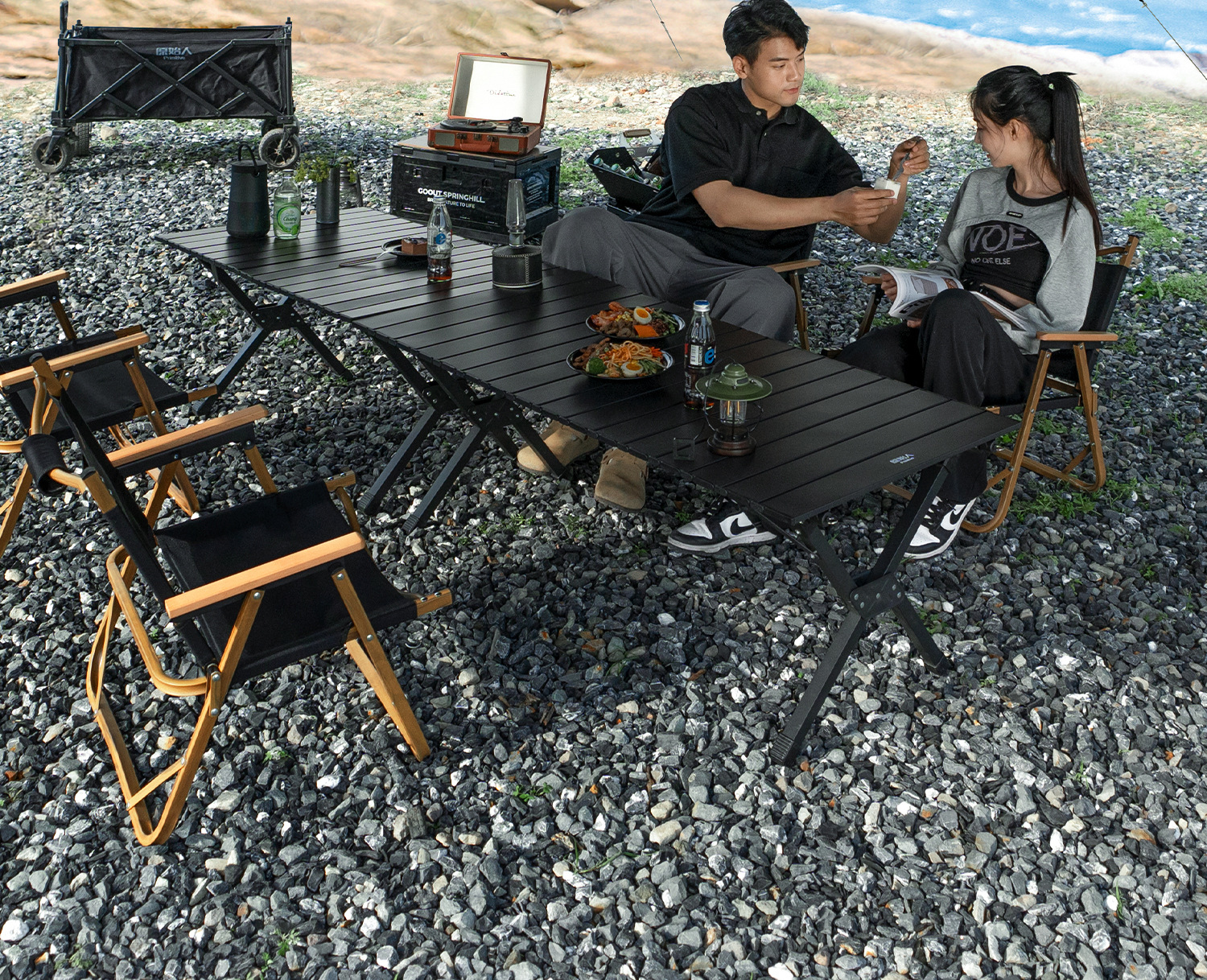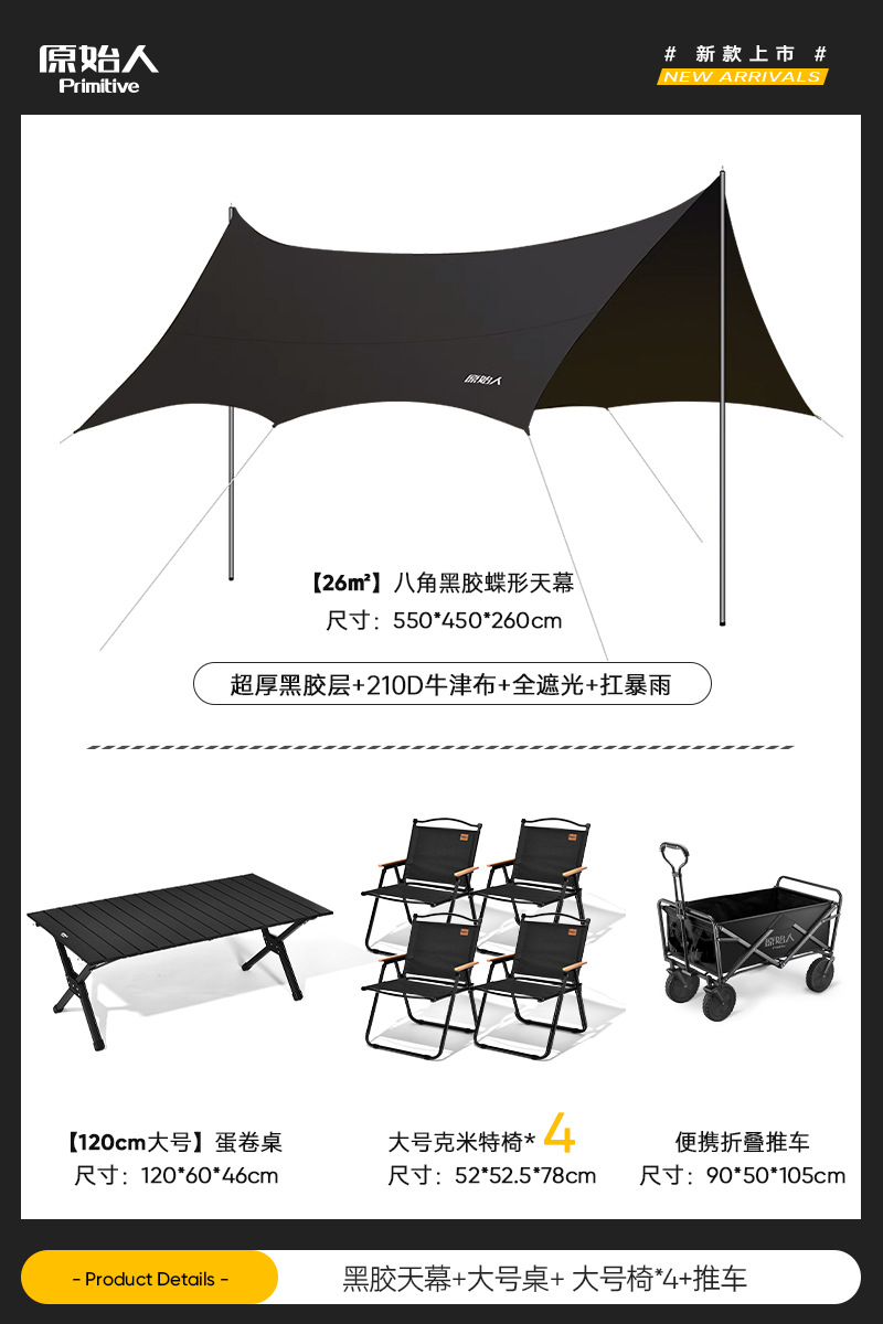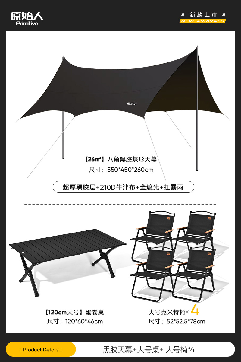 原始人露营桌椅户外折叠桌蛋卷桌野餐桌子椅子便携式用品装备全套