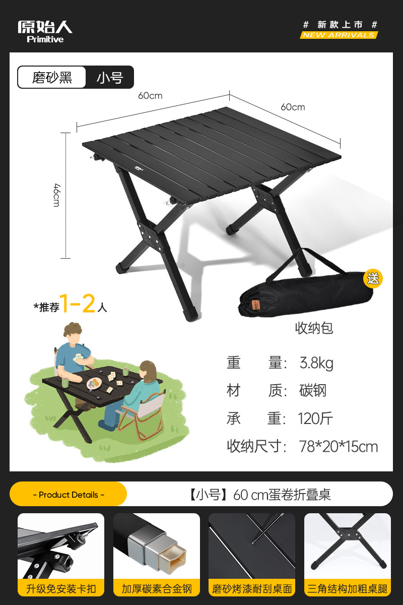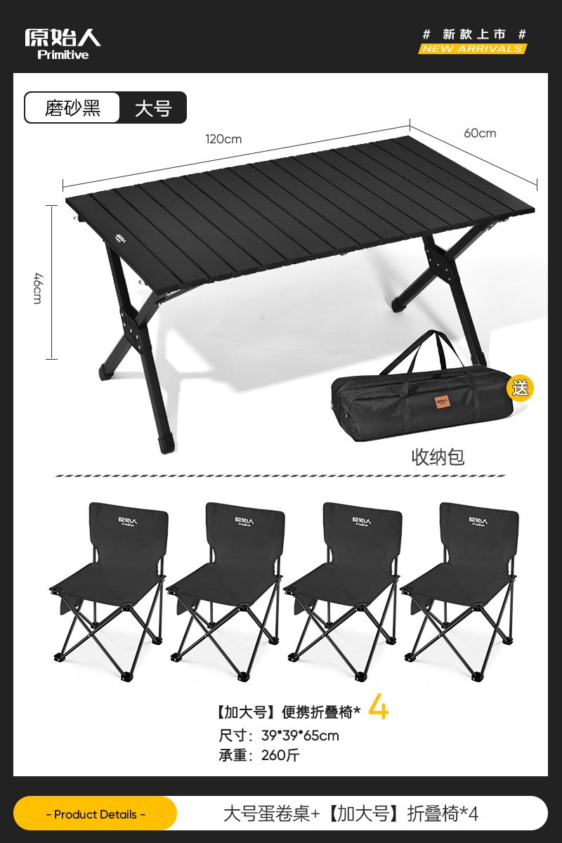 원시적 인 남자 캠핑 테이블과 의자 야외 접이식 테이블 계란 롤 테이블 피크닉 테이블과 의자 휴대용 용품 장비 전체 세트스토어 가기