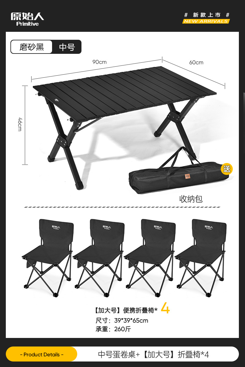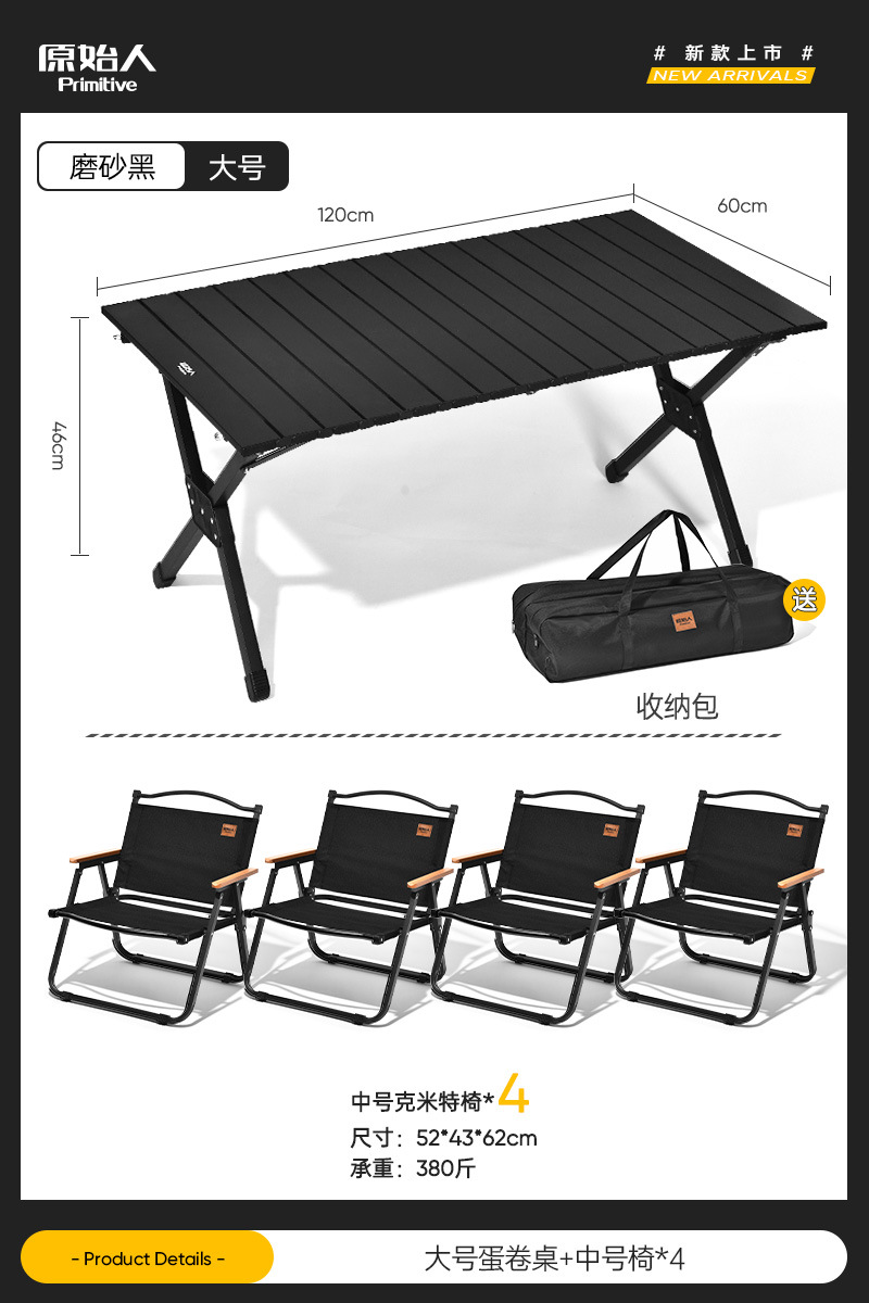 원시적 인 남자 캠핑 테이블과 의자 야외 접이식 테이블 계란 롤 테이블 피크닉 테이블과 의자 휴대용 용품 장비 전체 세트