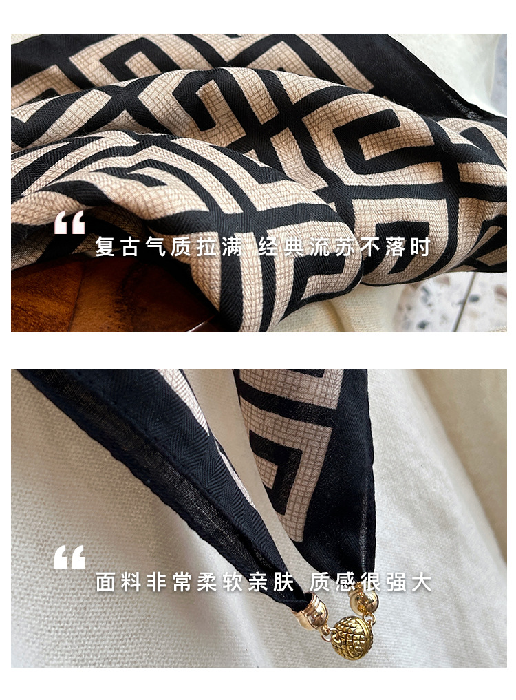 丝巾女春季韩版时尚百搭围巾纱巾外搭领巾金属扣黑色字母三角披肩