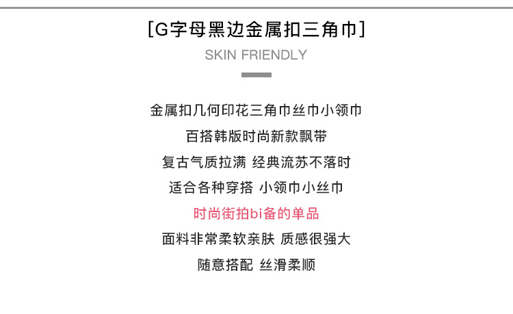 • G 문자 검은 가장자리 금속 버클 삼각형 수건