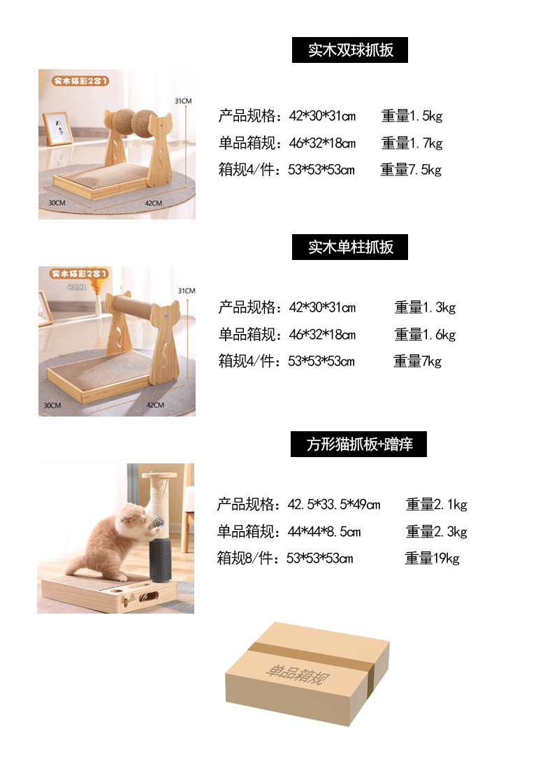 나무로 만든 세로형 고양이 스크래치 보드, 사자수 기둥, 스크래치 보드, 이중볼, 골판지, 원목 고양이 장난감, 해외 인기 상품스토어 가기