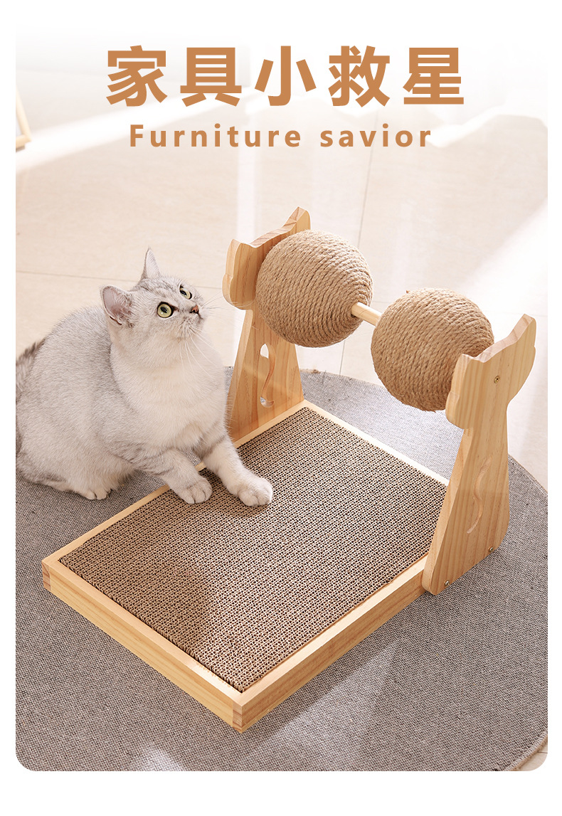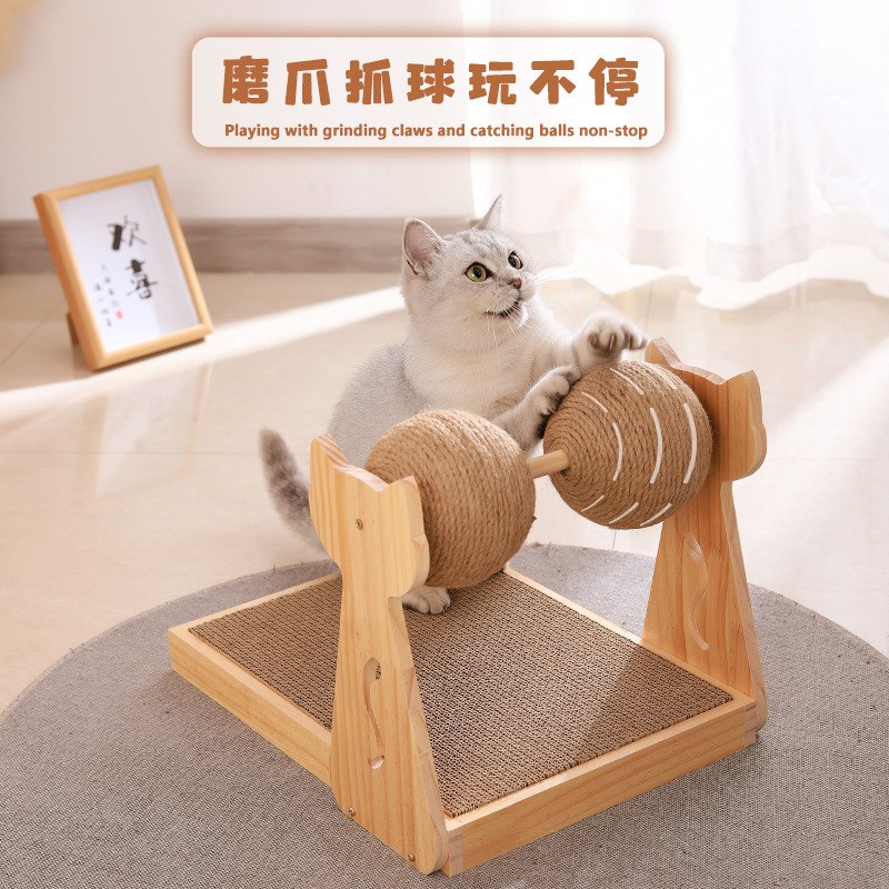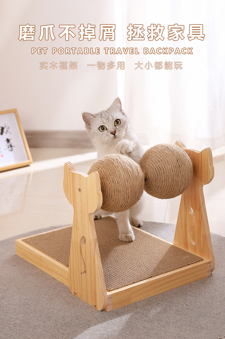 나무로 만든 세로형 고양이 스크래치 보드, 사자수 기둥, 스크래치 보드, 이중볼, 골판지, 원목 고양이 장난감, 해외 인기 상품