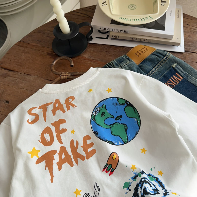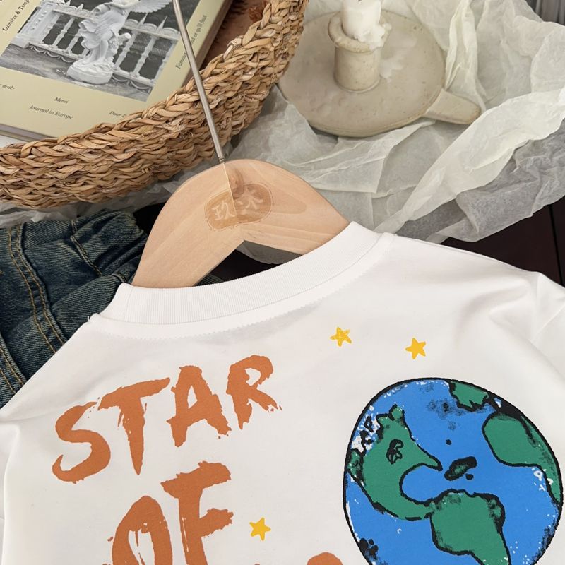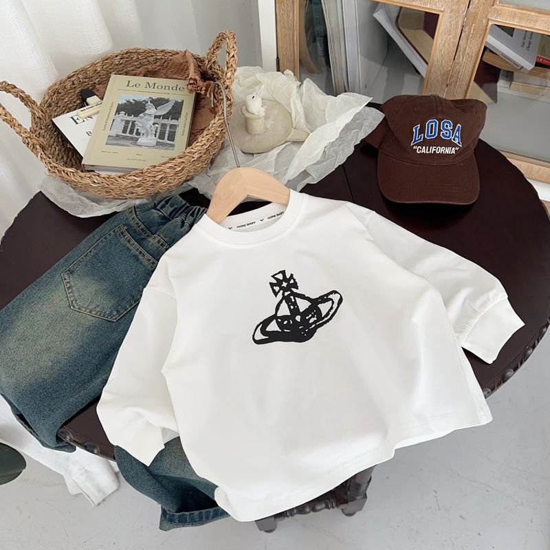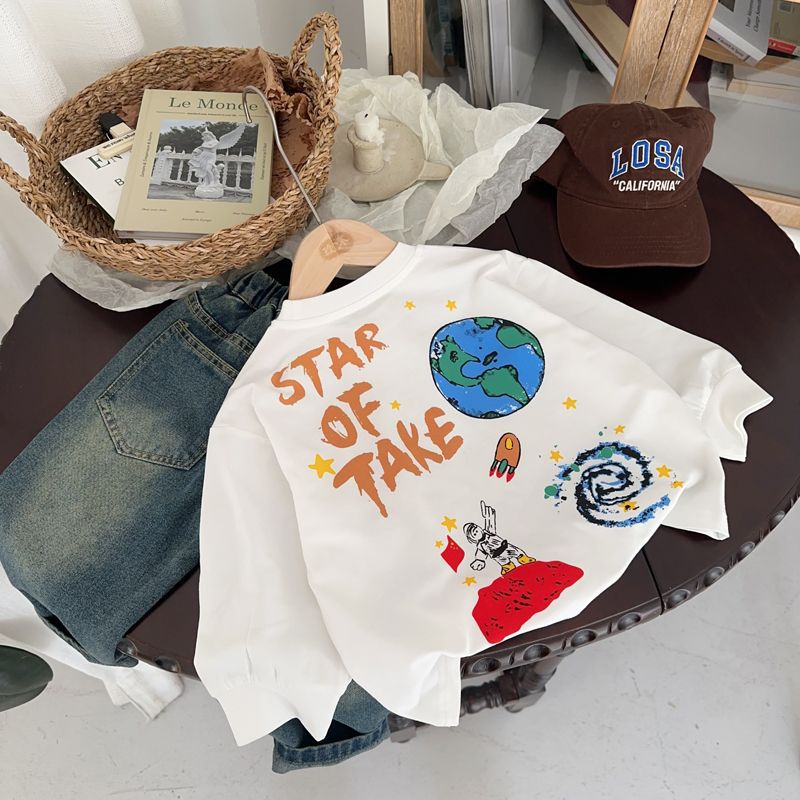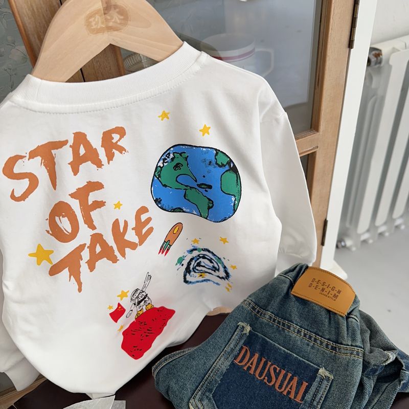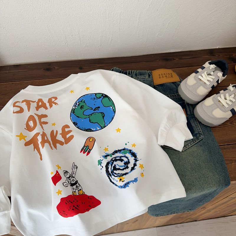 남아용 티셔츠 2025 가을 신상 아동 캐주얼 올오버 프린트 다용도 상의 단색 스타일리시 긴팔 이너웨어 트렌디스토어 가기