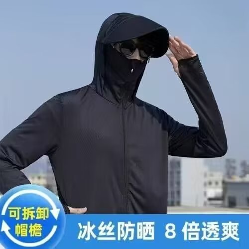2024 여름 새로운 아이스 실크 태양 보호 의류 후드 남성용 UV 보호 통기성 의류 야외 낚시 태양 보호 코트스토어 가기
