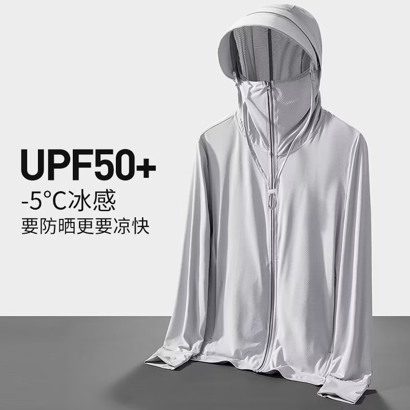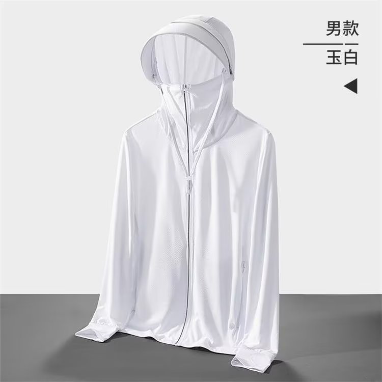 2024 여름 새로운 아이스 실크 태양 보호 의류 후드 남성용 UV 보호 통기성 의류 야외 낚시 태양 보호 코트