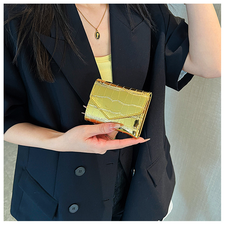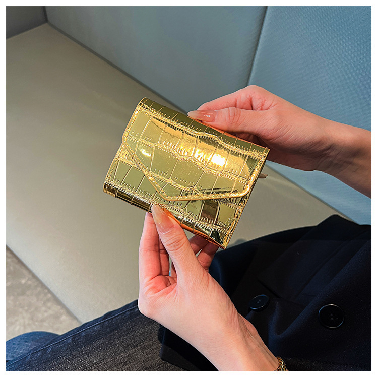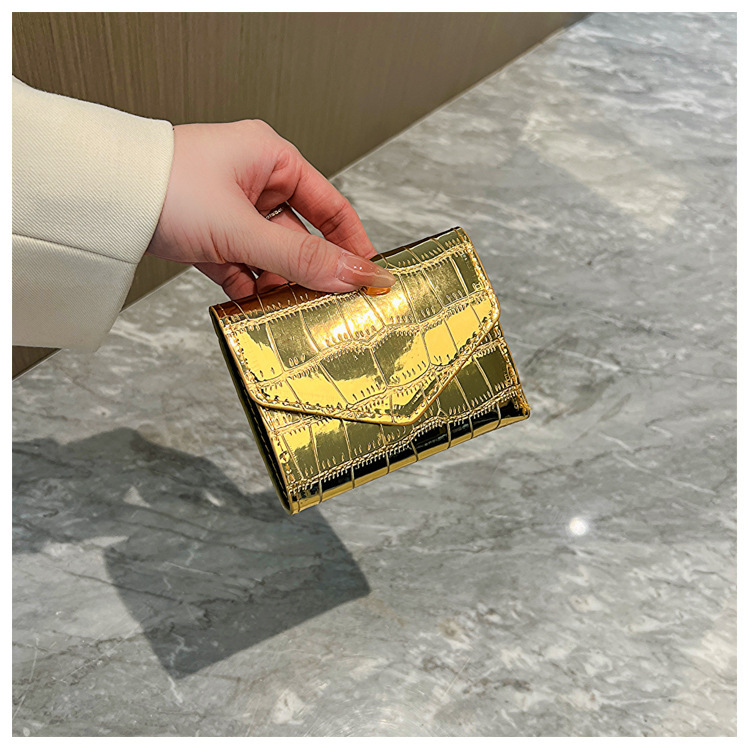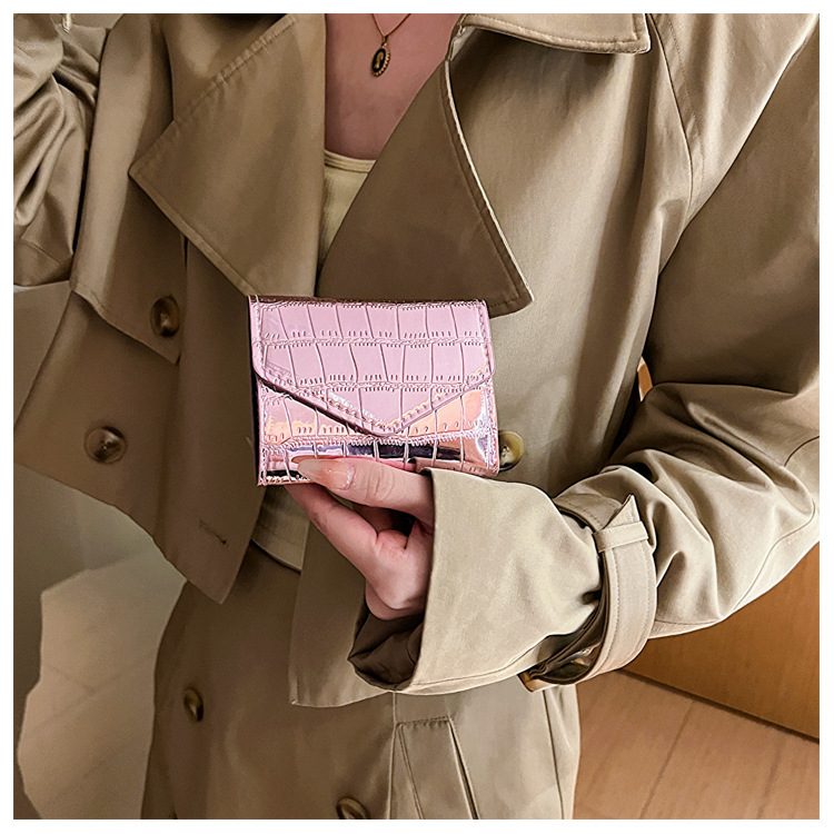 时尚石头纹钱包2024新款女迷你多卡位短款手拿包镭射卡包厂家