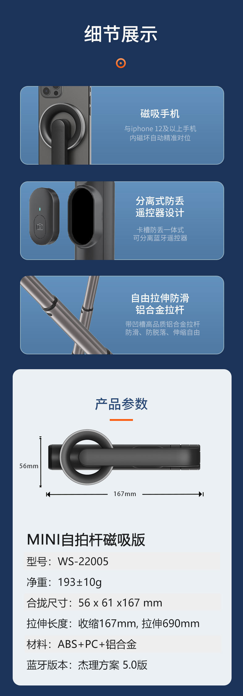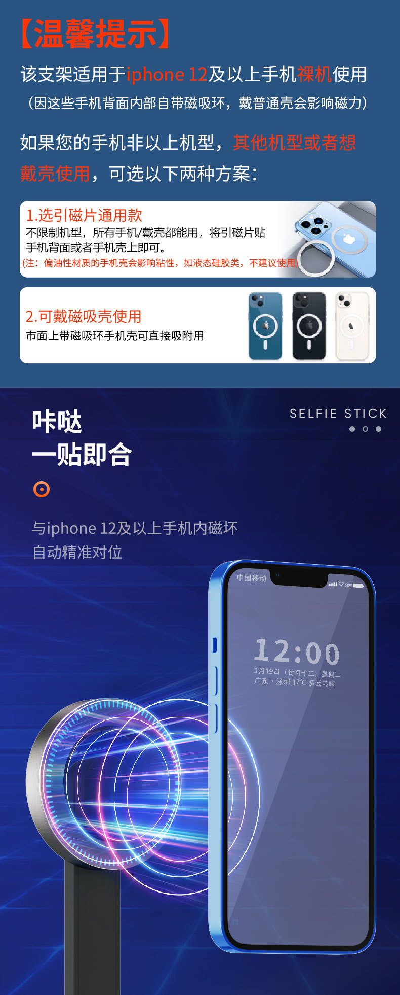마그네틱 휴대폰 셀카봉, 맥세이프 블루투스 리모컨, 미니 알루미늄 합금 라이브 스트리밍 삼각대, 첨단 기술, 세로 촬영스토어 가기