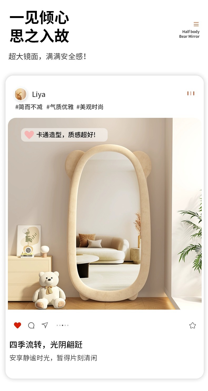 원피스 배달 귀여운 곰 크림 스타일 드레싱 거울 서브 넷 레드 전신 거울 소녀의 홈 바닥 피팅 거울스토어 가기