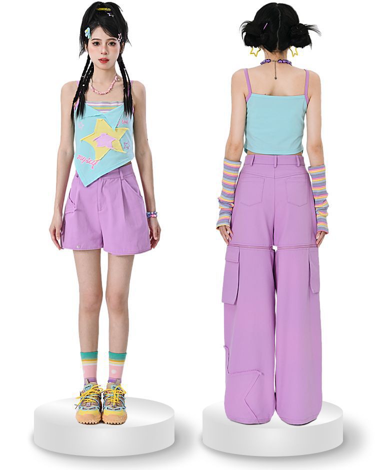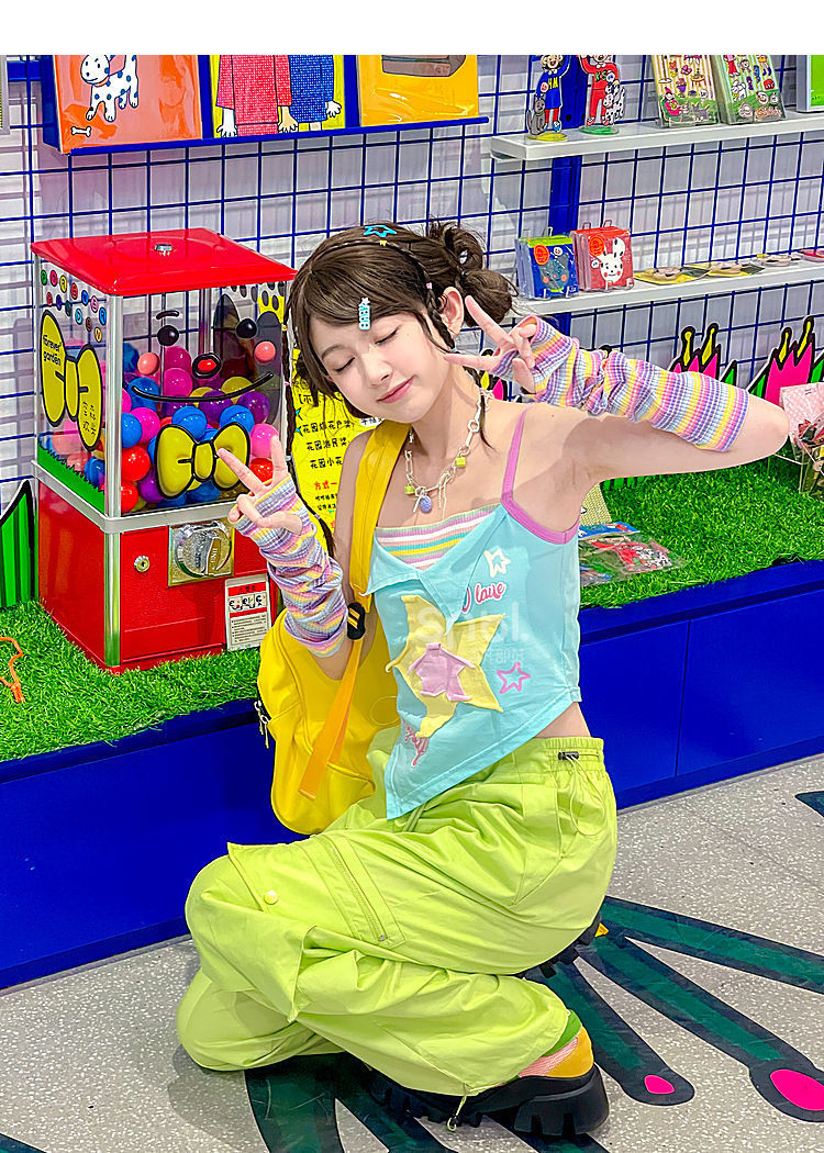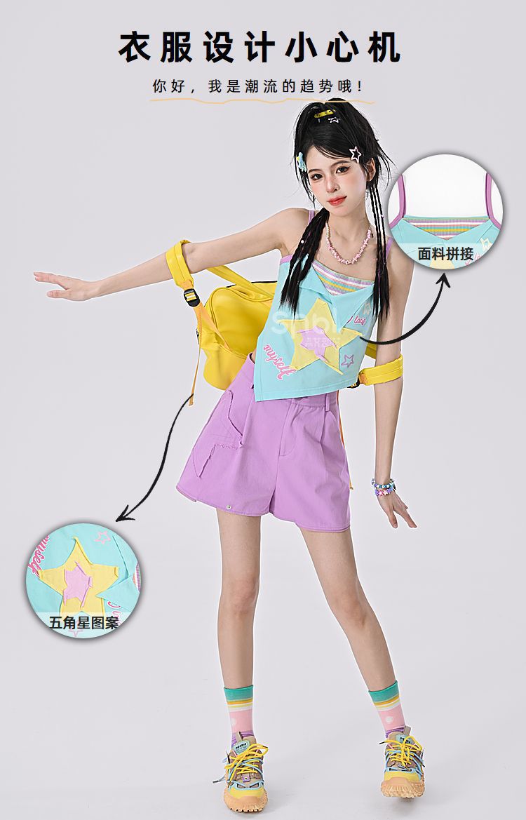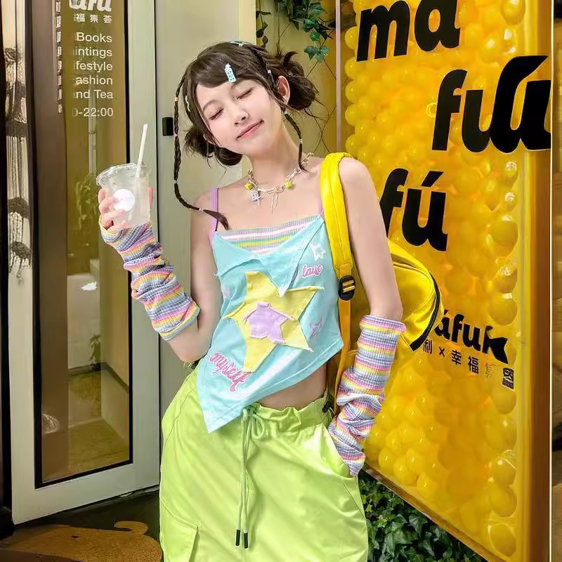 도파민 여름 소녀 가짜 투피스 컬러 캐미솔 겉옷 2024 여름 새로운 탑 패션 착용