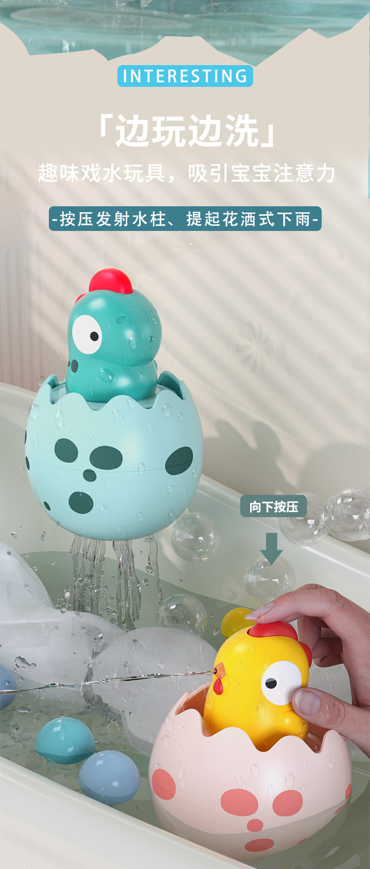 국경을 넘는 어린이 물놀이 장난감 물 분사 공룡알 비구름 아기 머리 감기 목욕 욕실 샤워기 인터랙티브 목욕