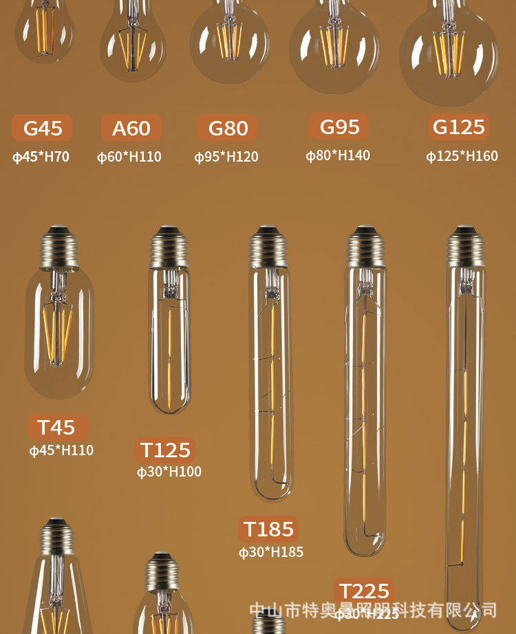 Led 필라멘트 전구 T125 튜브 전구 스트로브 에디슨 T300 스트립 T 튜브 플루트 E27 나사 T185
