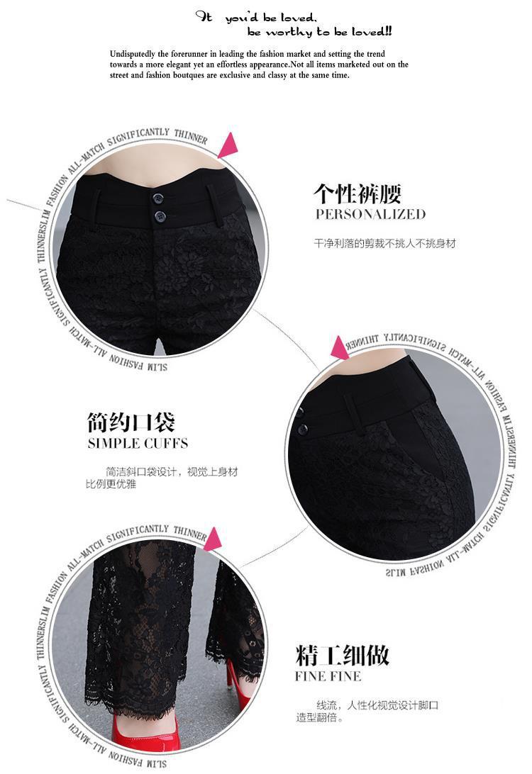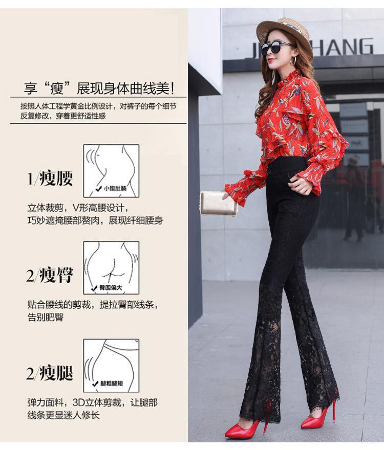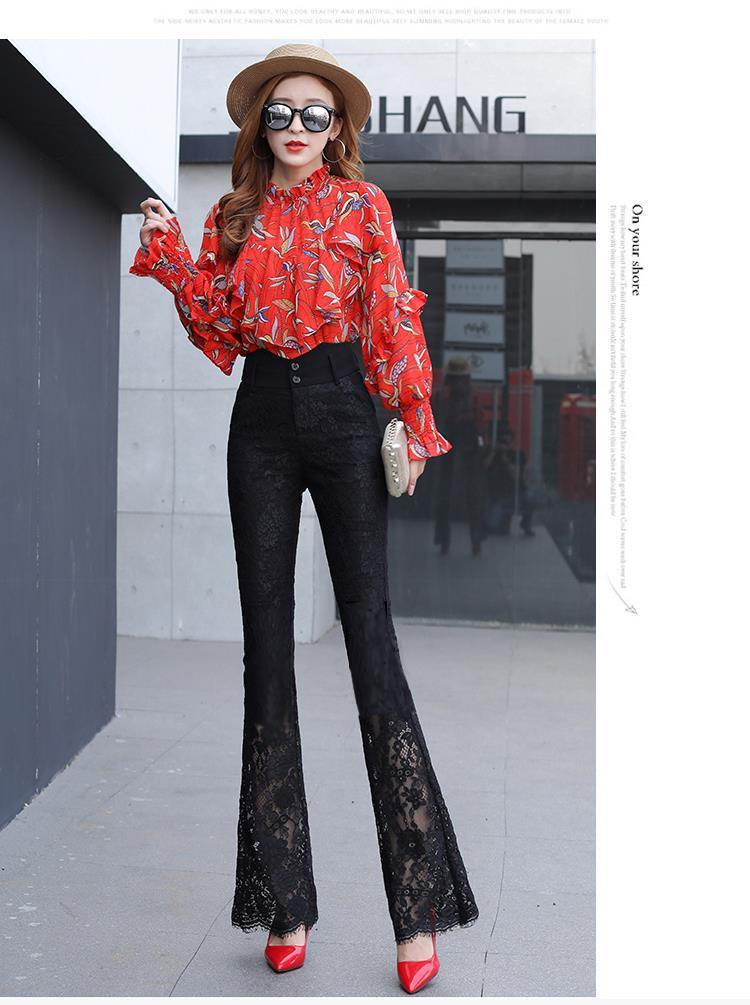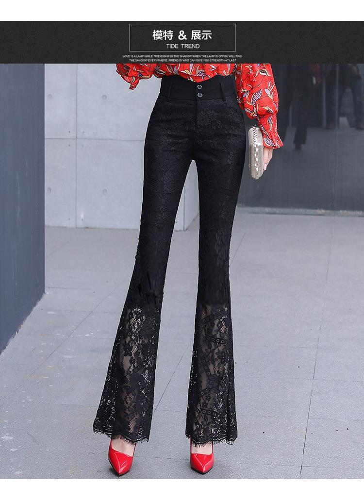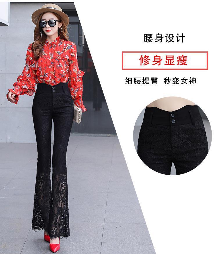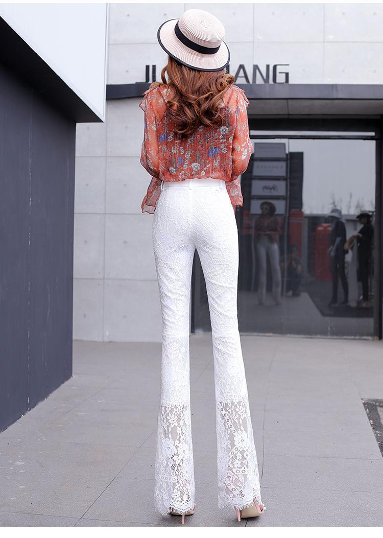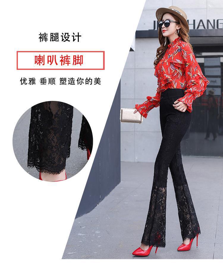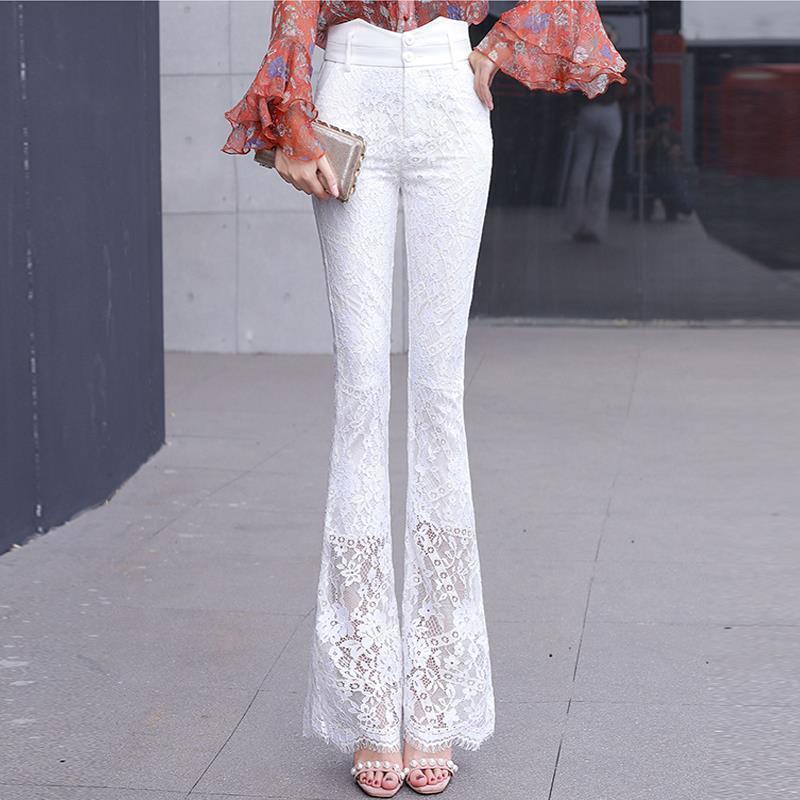 여름 새로운 속이 빈 레이스 플레어 바지 여성의 높은 허리 슬리밍 캐주얼 바지