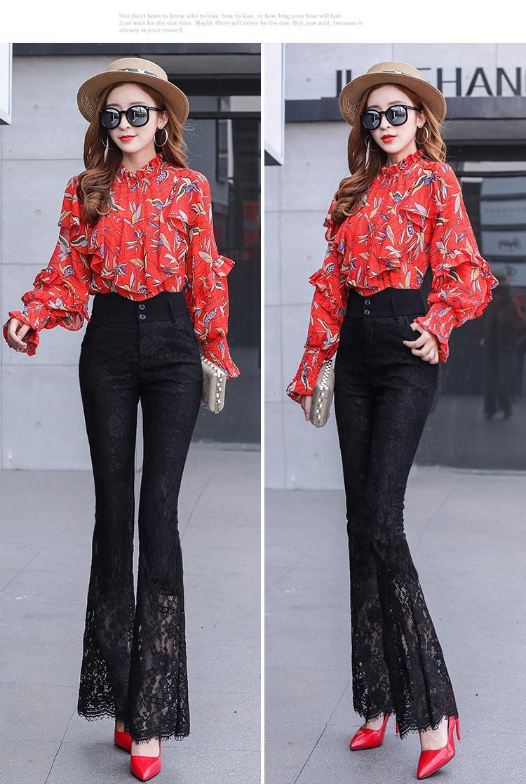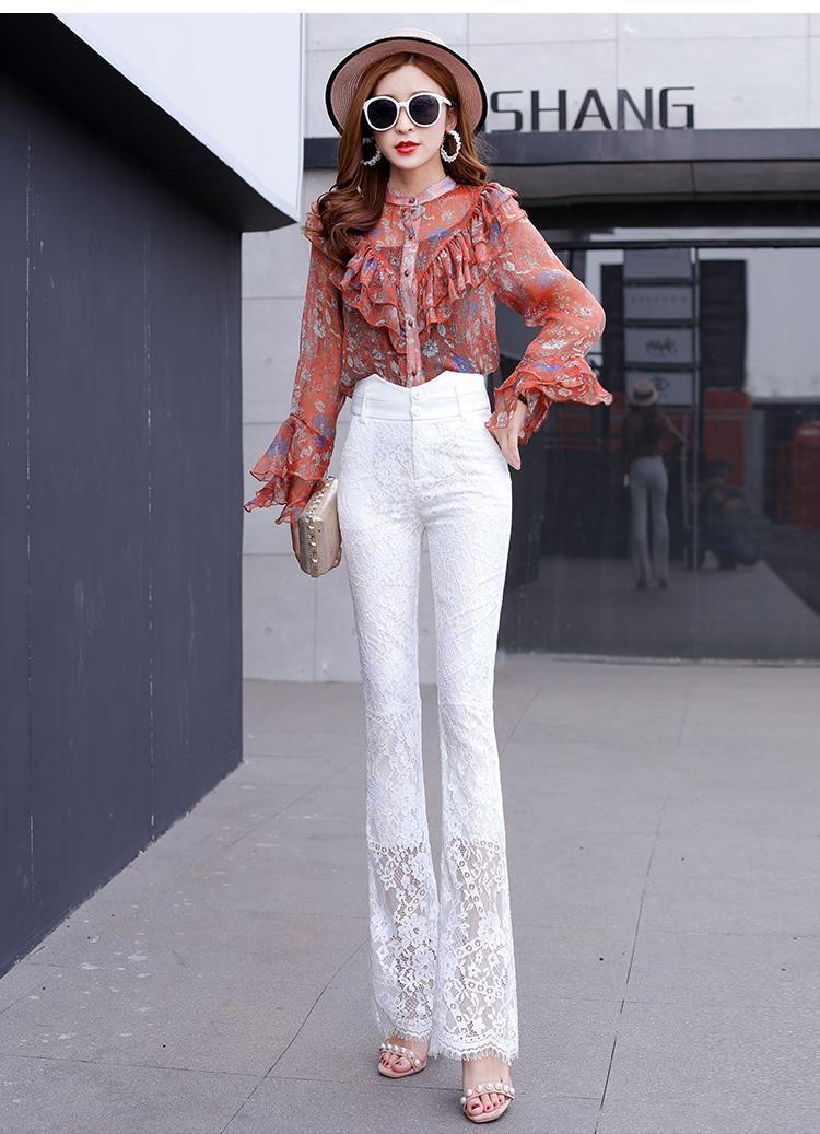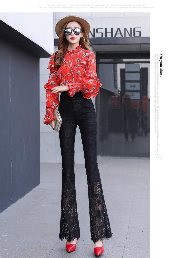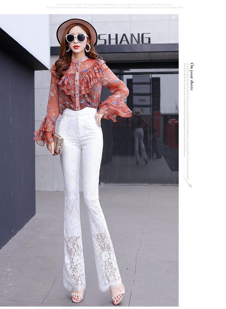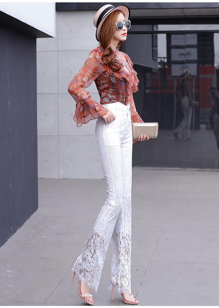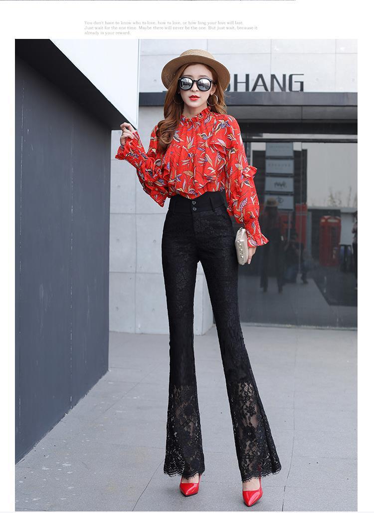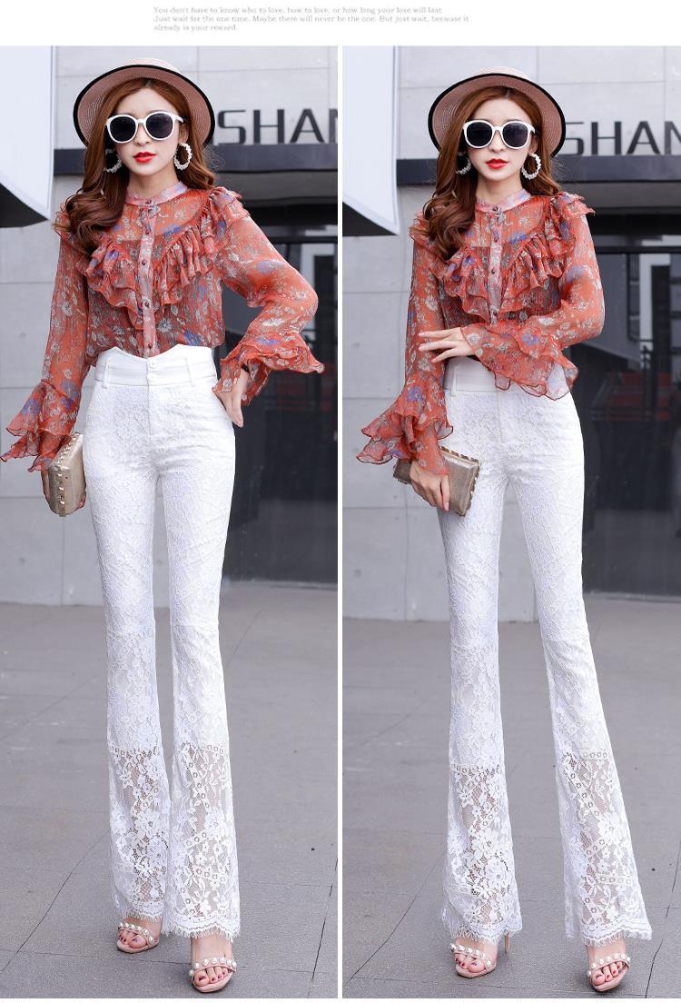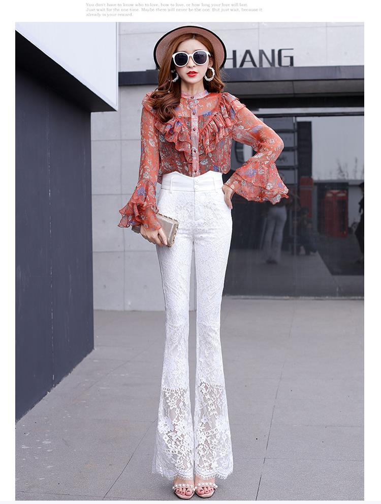 여름 새로운 속이 빈 레이스 플레어 바지 여성의 높은 허리 슬리밍 캐주얼 바지