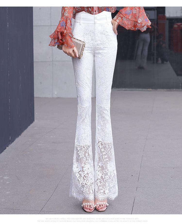 여름 새로운 속이 빈 레이스 플레어 바지 여성의 높은 허리 슬리밍 캐주얼 바지스토어 가기