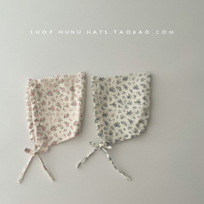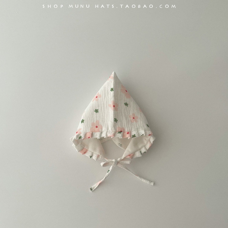 • 느린 뾰족한 거즈 코트 작은 핑크 꽃 + 0-12 개월 (머리 둘레 38-45cm)+ 프리 사이즈
