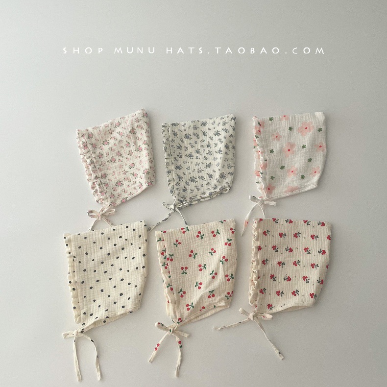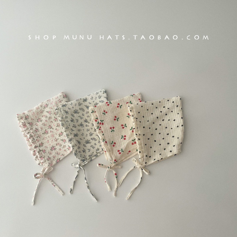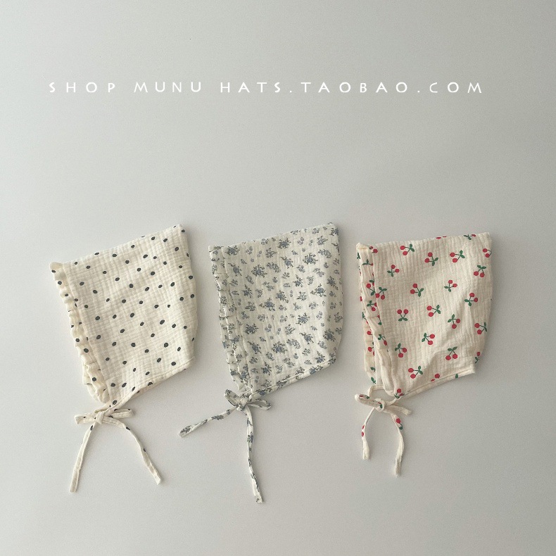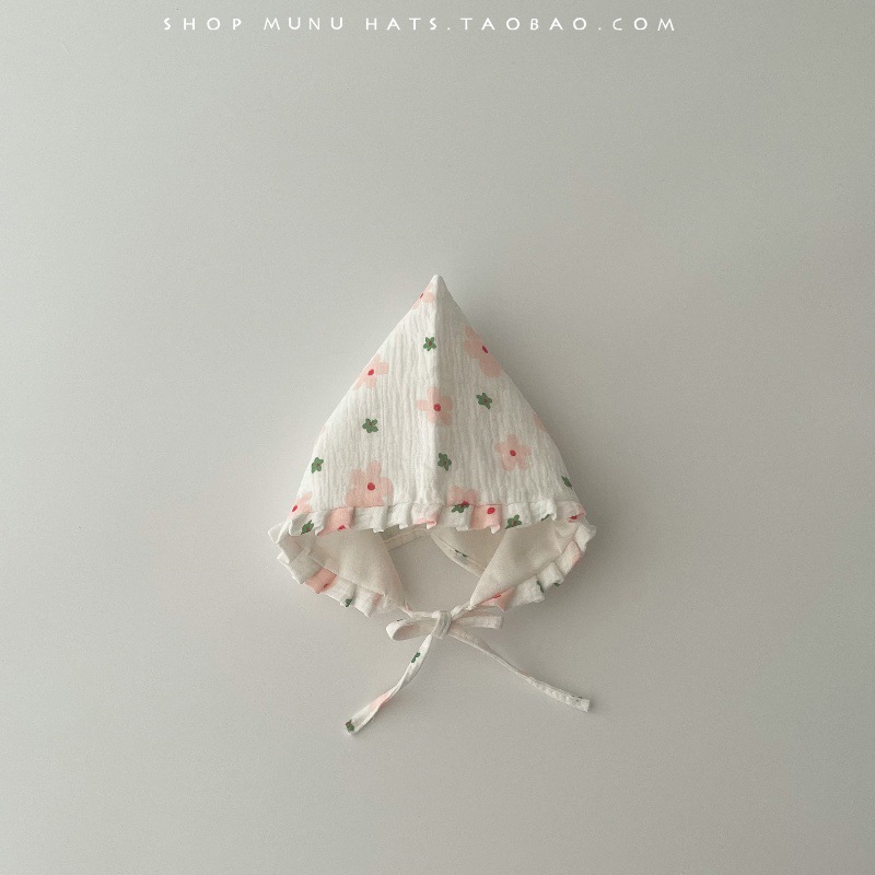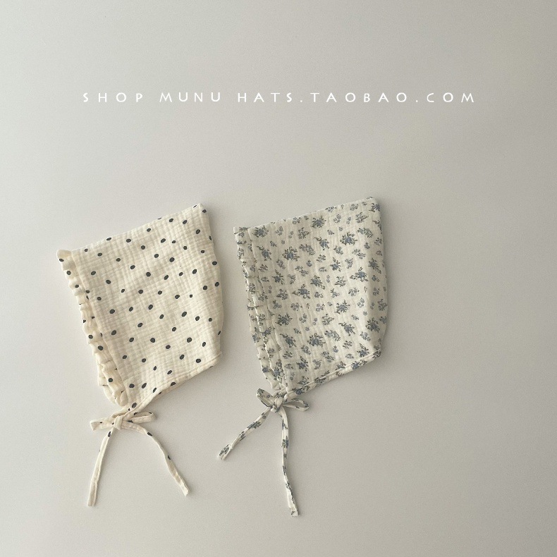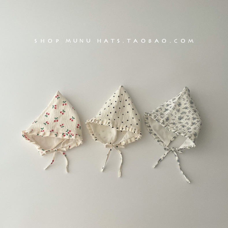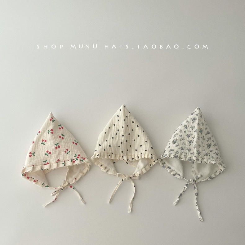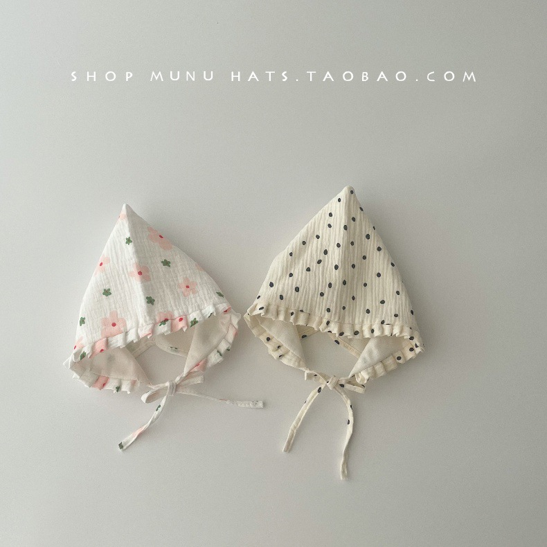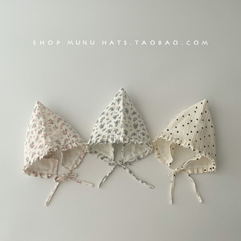 아기 모자 한국식 거즈 뾰족한 귀마개 유아 귀여운 코트 모자 레이스 업 신생아 아기 모자