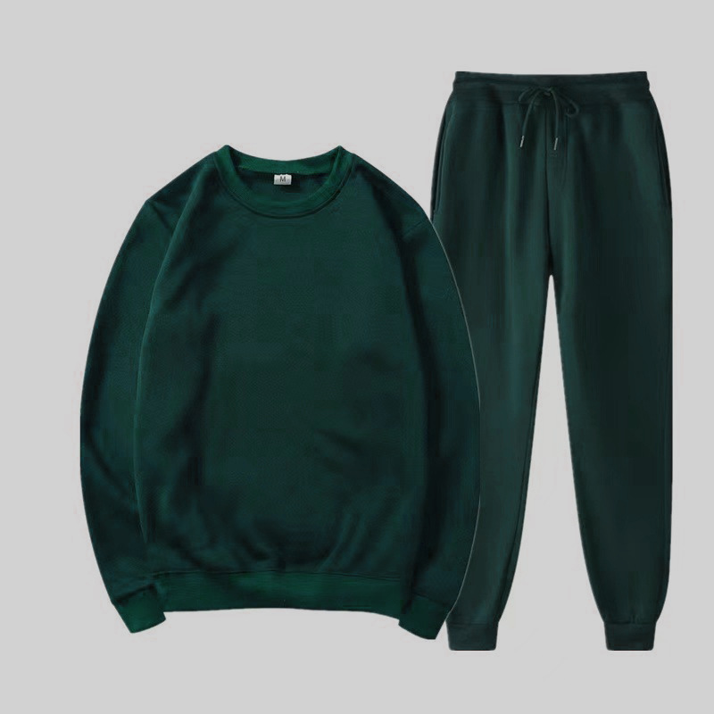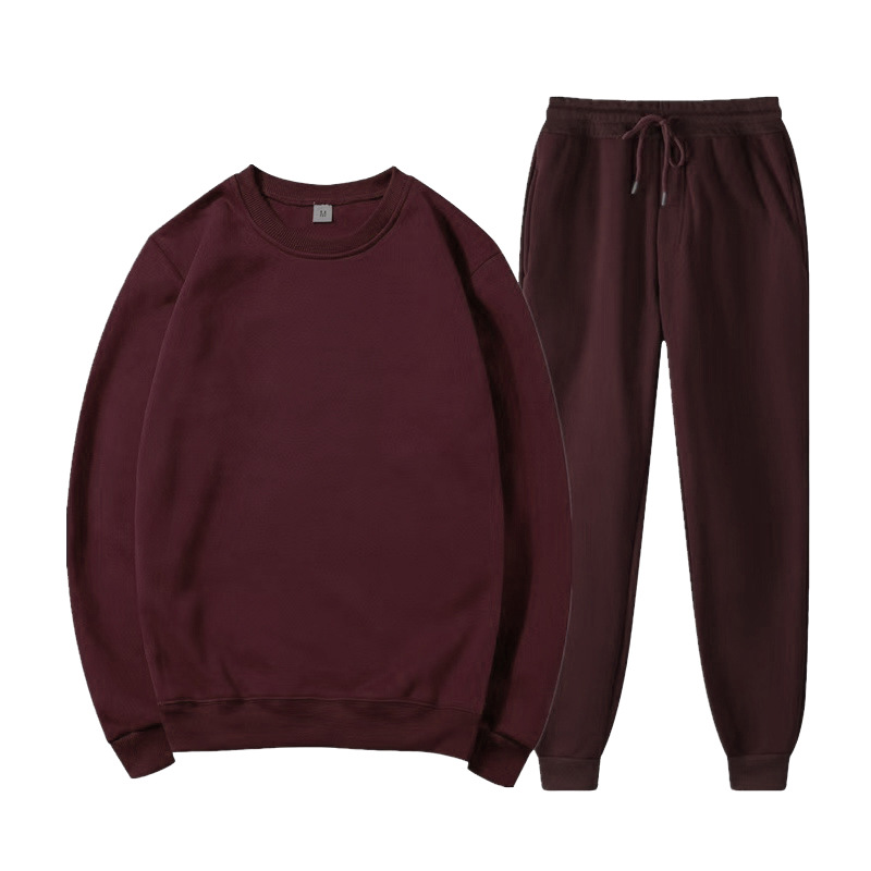 남녀공용 크로스보더 라운드넥 스웨트셔츠 스포츠 세트 단색 플레인 플리스 루즈핏 풀오버 운동복 동일 색상