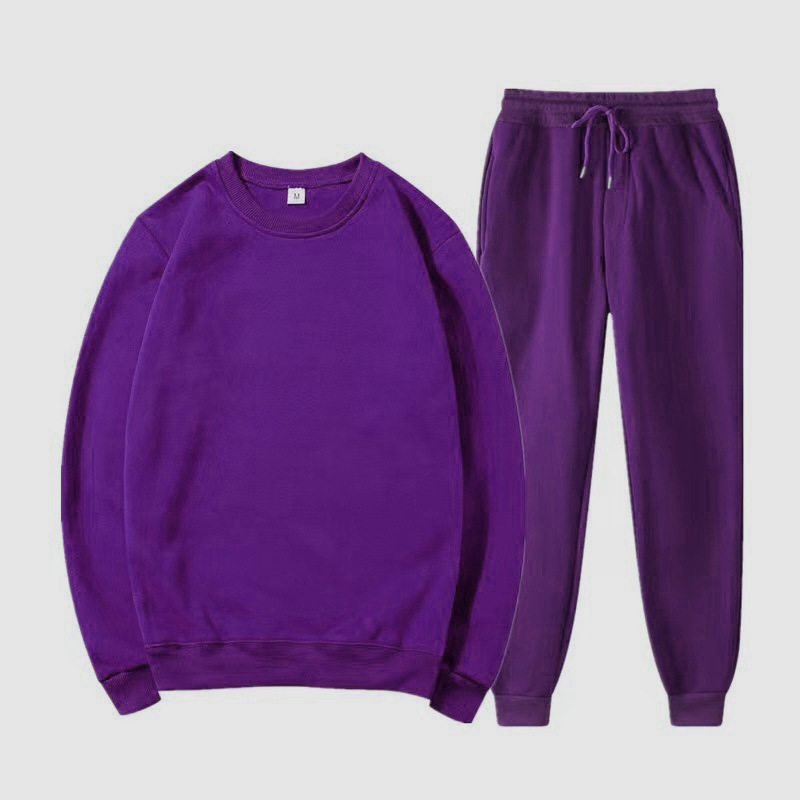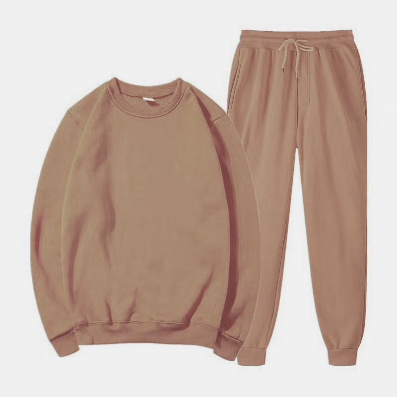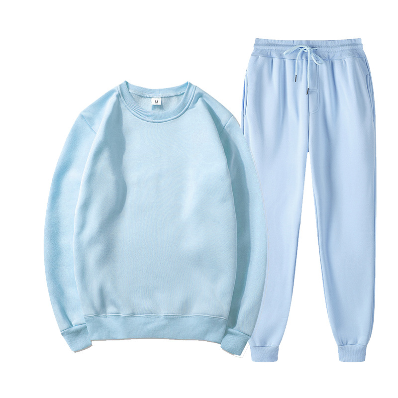남녀공용 크로스보더 라운드넥 스웨트셔츠 스포츠 세트 단색 플레인 플리스 루즈핏 풀오버 운동복 동일 색상스토어 가기