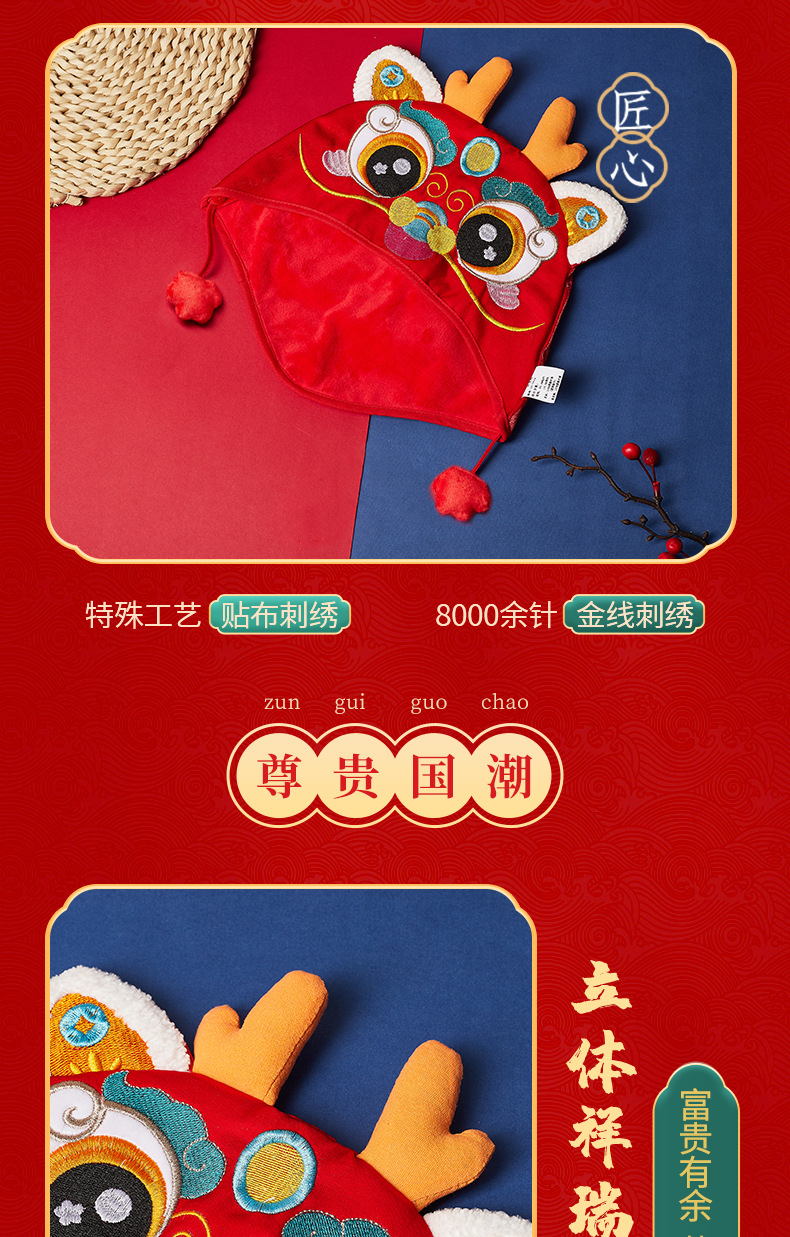 새로운 아기 호랑이 머리 모자 어린이 새해 수도꼭지 단일 모자 전통 한후 자수 모자 한 달 된 백일 된 모자스토어 가기