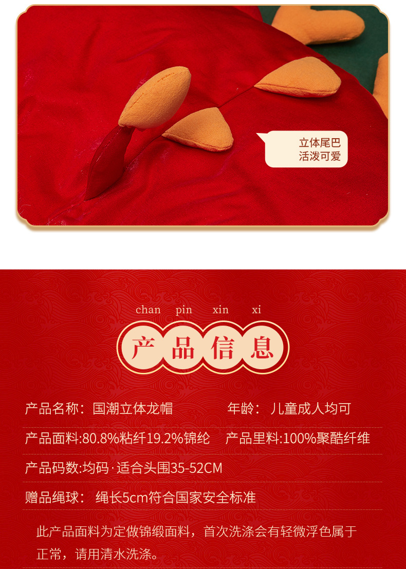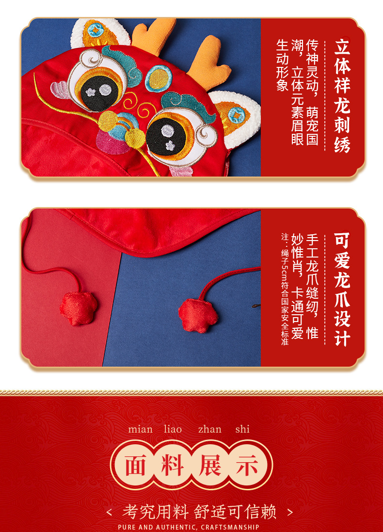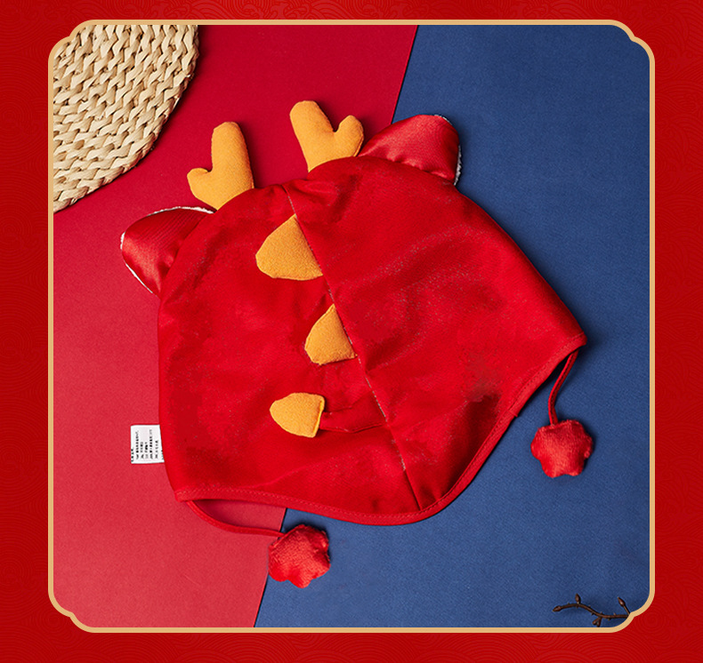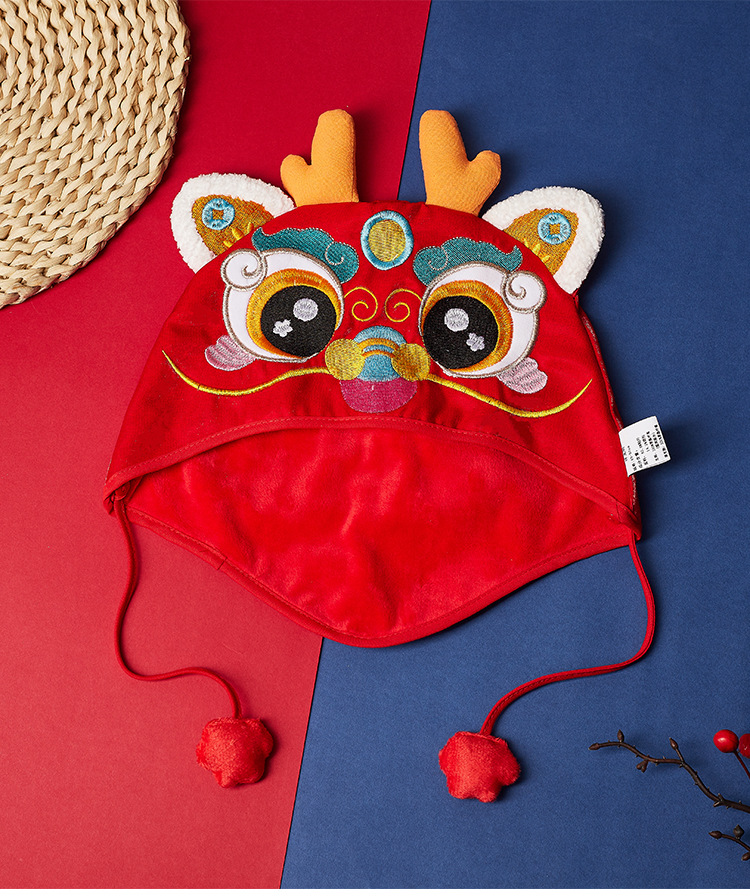새로운 아기 호랑이 머리 모자 어린이 새해 수도꼭지 단일 모자 전통 한후 자수 모자 한 달 된 백일 된 모자