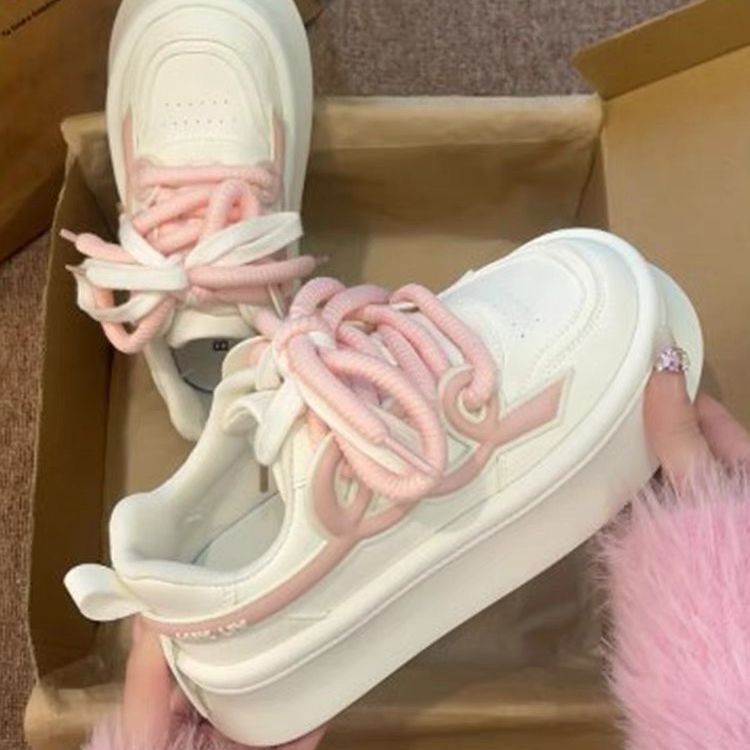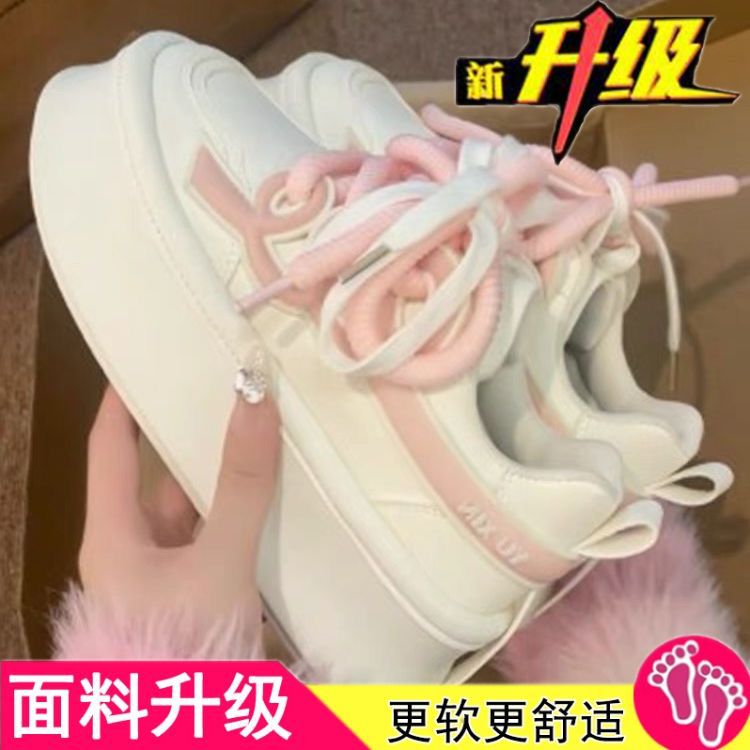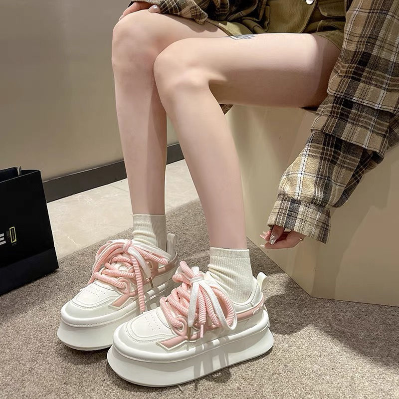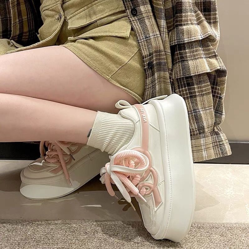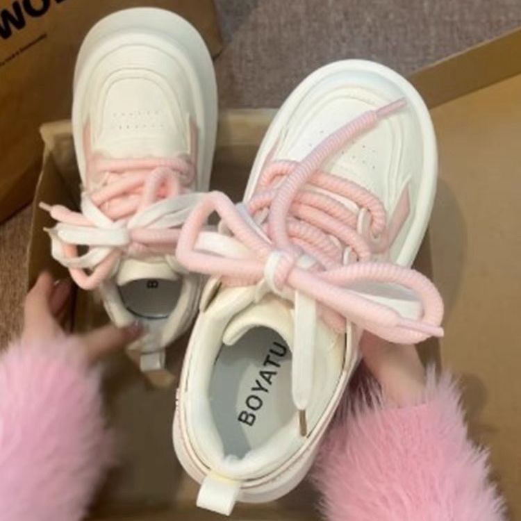 소녀 우유 후후 흰색 신발 2024 봄과 가을 새로운 스타일 원피스 두꺼운 바닥 장식 작은 플랫폼 신발스토어 가기