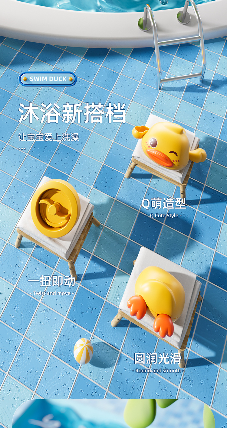 • FC001-7Y [노란 오리 + 흰 오리 + 푸른 오리] 목욕 장난감