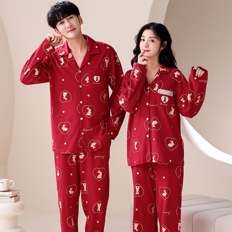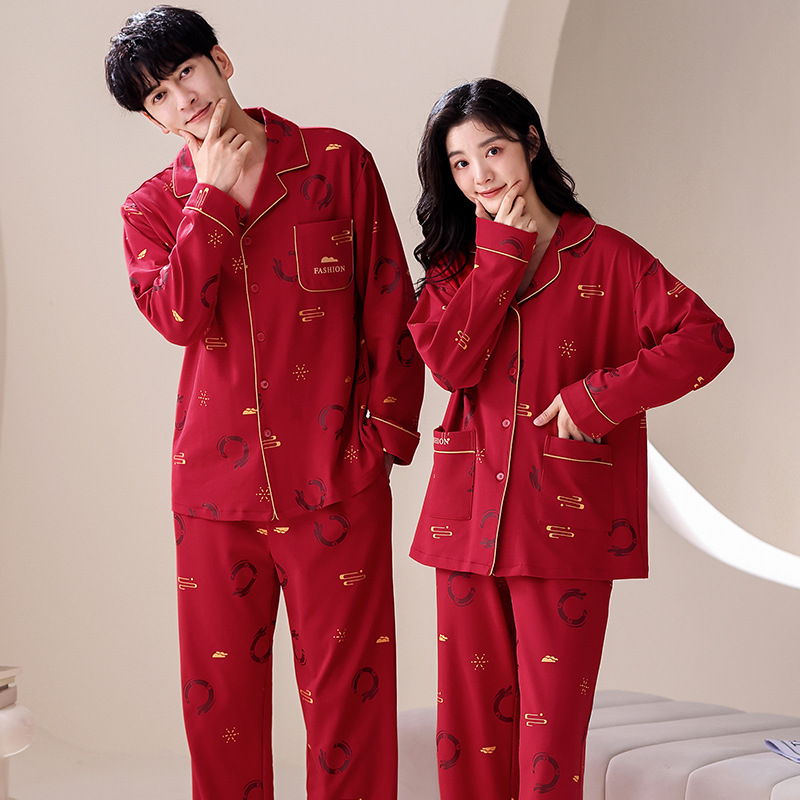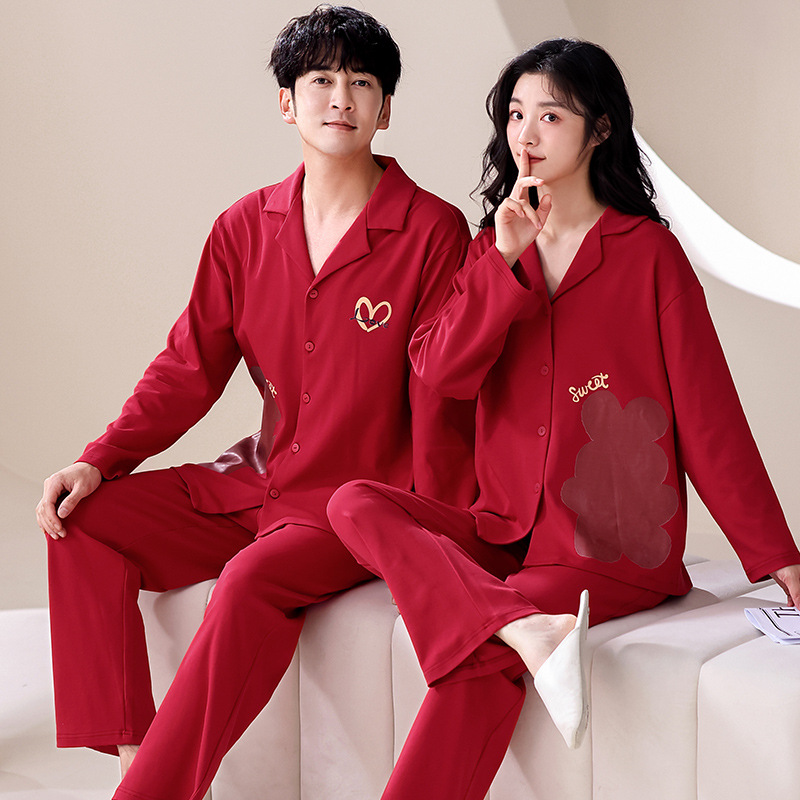 가을과 겨울 커플 잠옷 랙 코튼 커플 잠옷 겉옷 남자와 여자의 봄과 가을 결혼식 부부의 출생 년 홈웨어