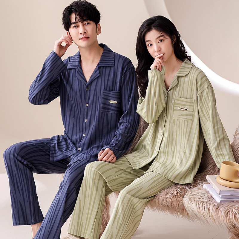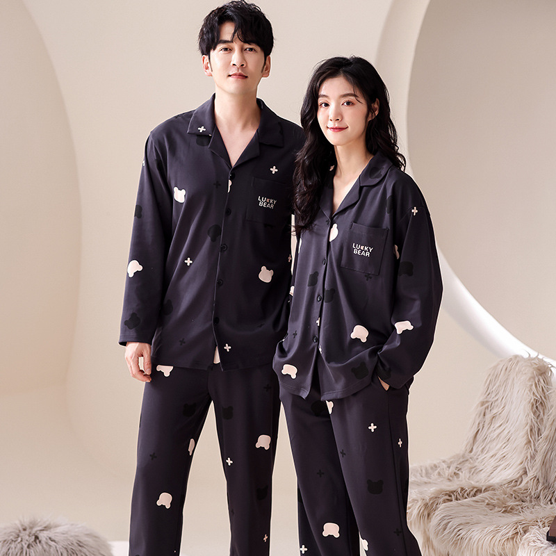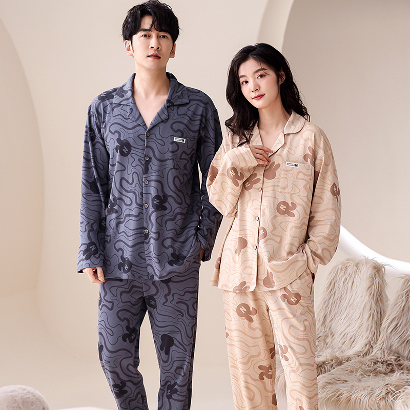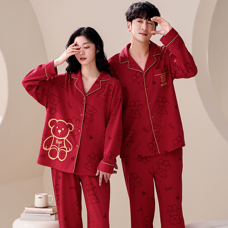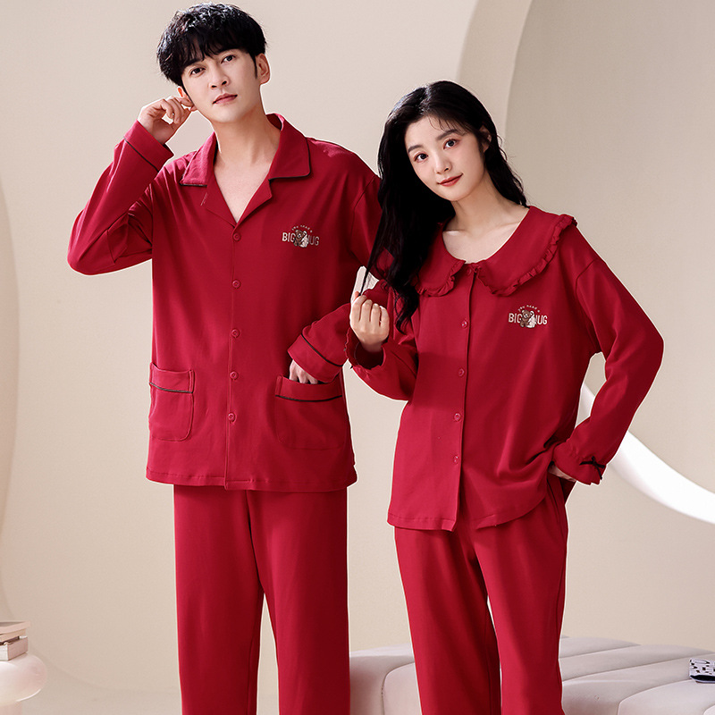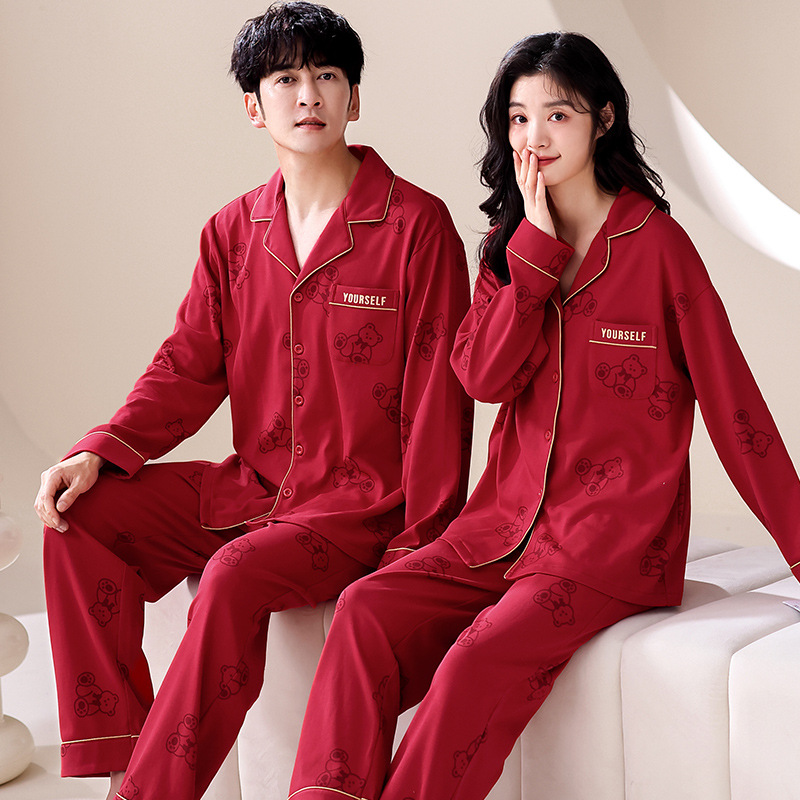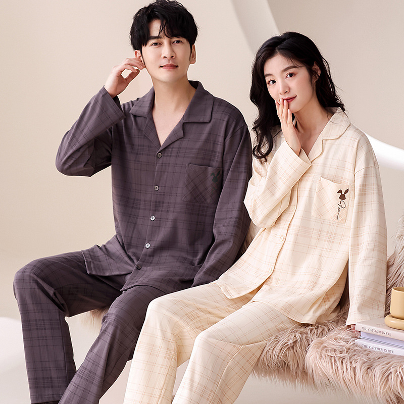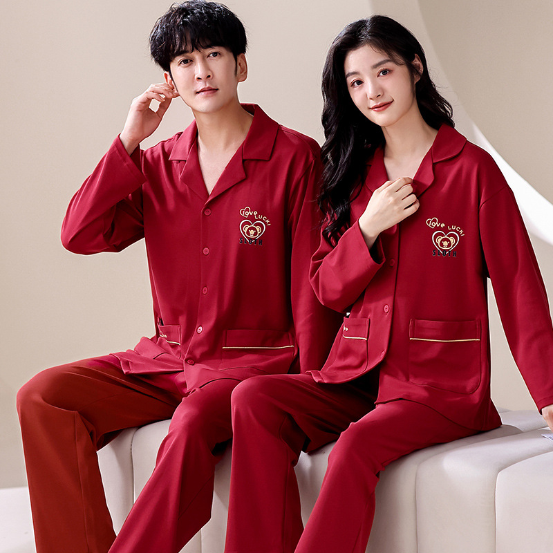 가을과 겨울 커플 잠옷 랙 코튼 커플 잠옷 겉옷 남자와 여자의 봄과 가을 결혼식 부부의 출생 년 홈웨어스토어 가기