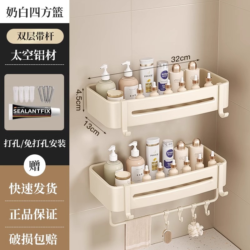• 유백색 사각형 바구니 더블 레이어-후크가있는 낮은 막대