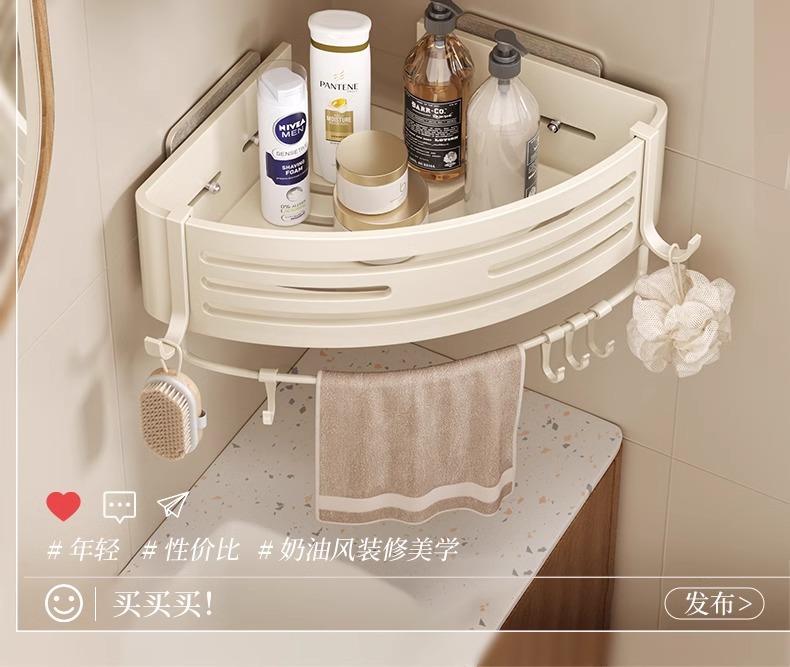 샤워 우유 흰색 삼각형 저장 랙 삼각형 바구니 펀치 무료 욕실 욕실 샤워 실 욕실 보관 랙스토어 가기