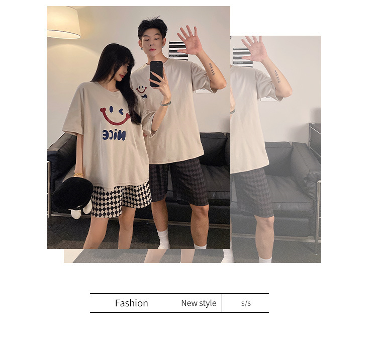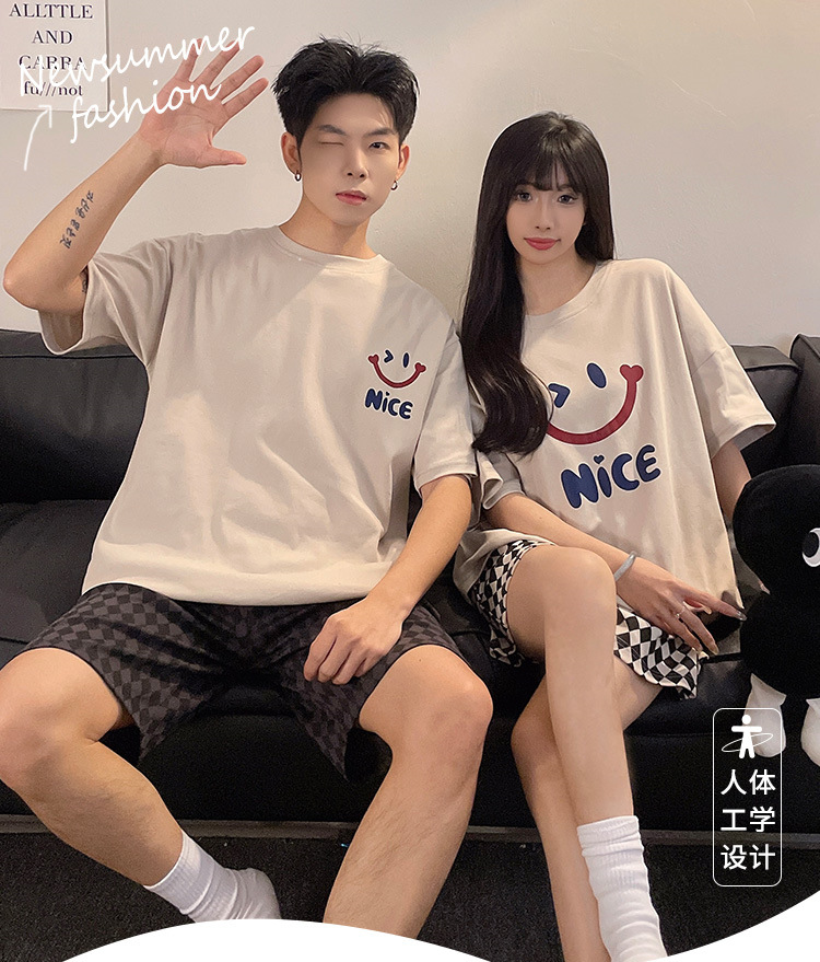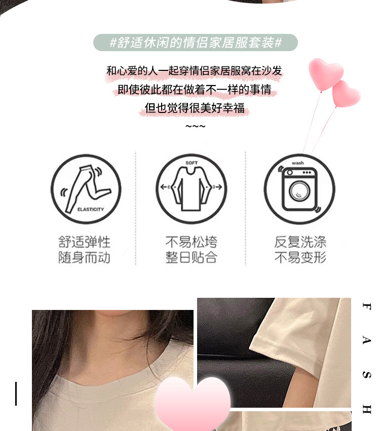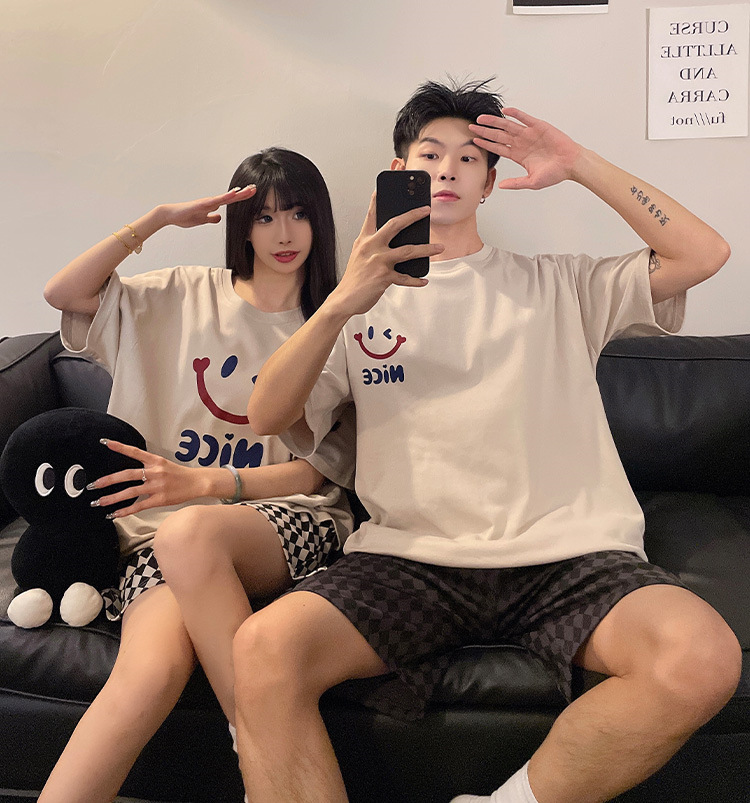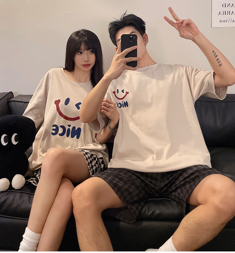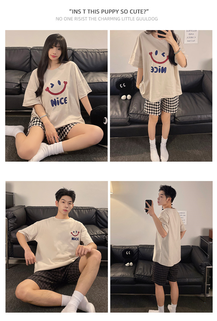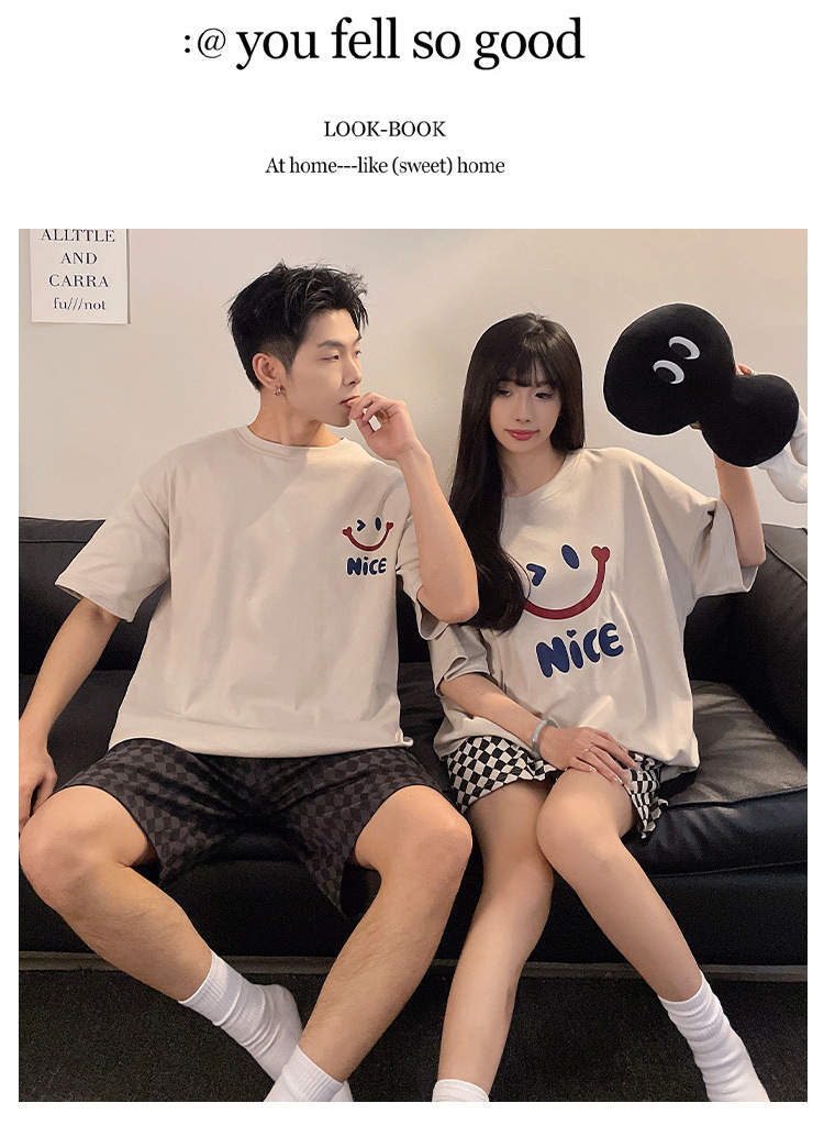 2024 새 커플 잠옷 여성 여름 코튼 투피스 얇은 여름 반팔 남성 만화 홈웨어스토어 가기