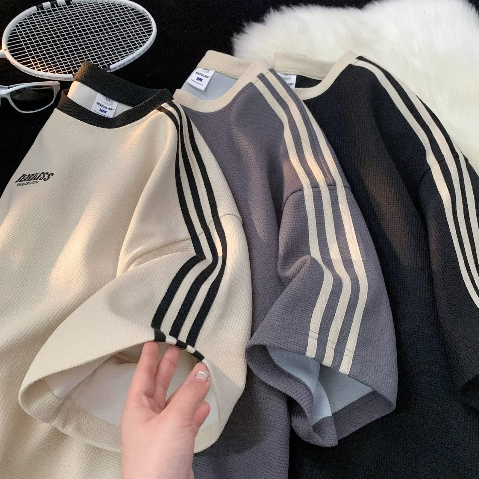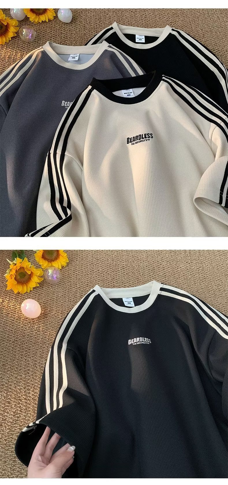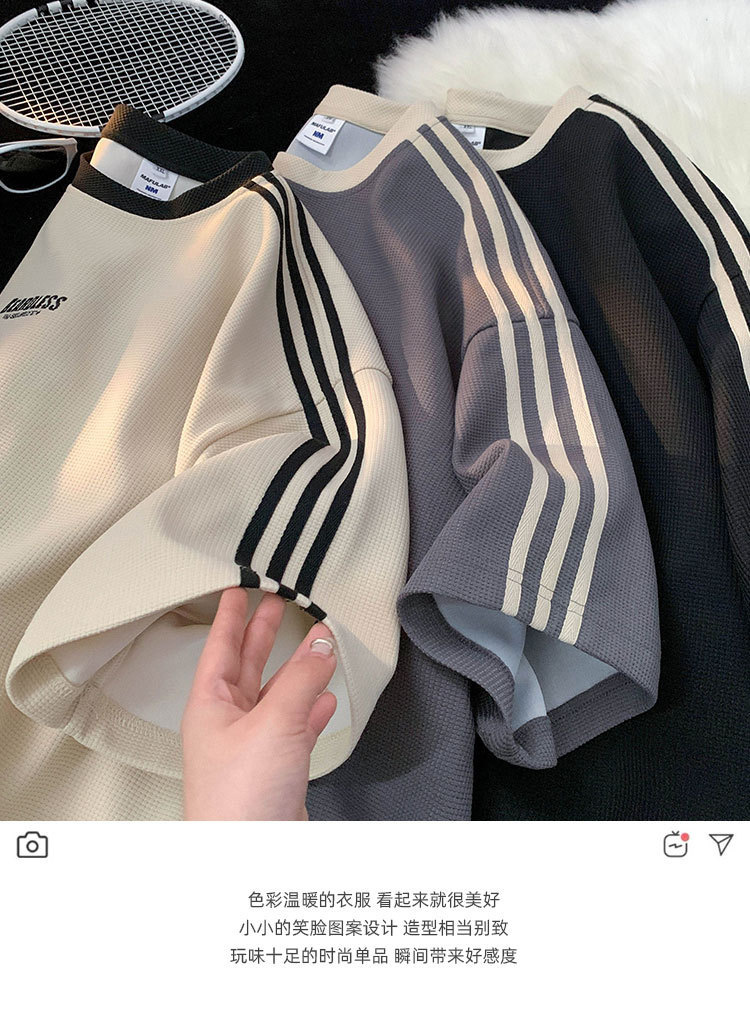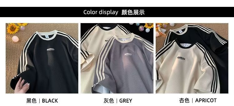 와플 티셔츠 남성 여름 2023 새로운 미국 패션 브랜드 반팔 티셔츠 느슨한 캐주얼 커플 하프 슬리브 탑