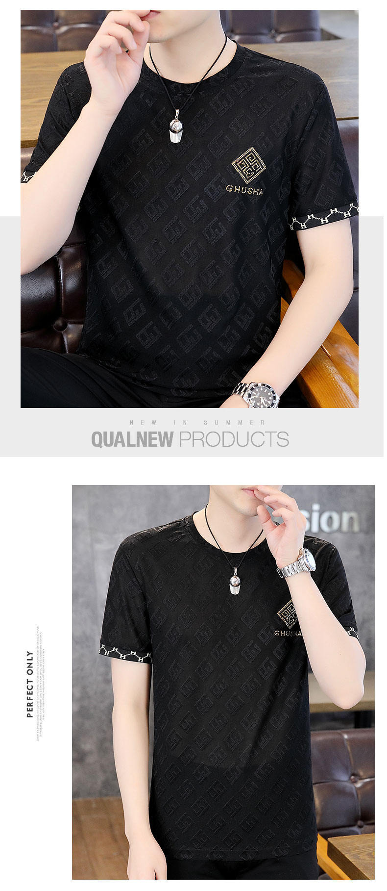 국경 간 대외 무역 배달 남성 여름 캐주얼 티셔츠 남성 청소년 패션 라운드 넥 짧은 소매 탑스토어 가기