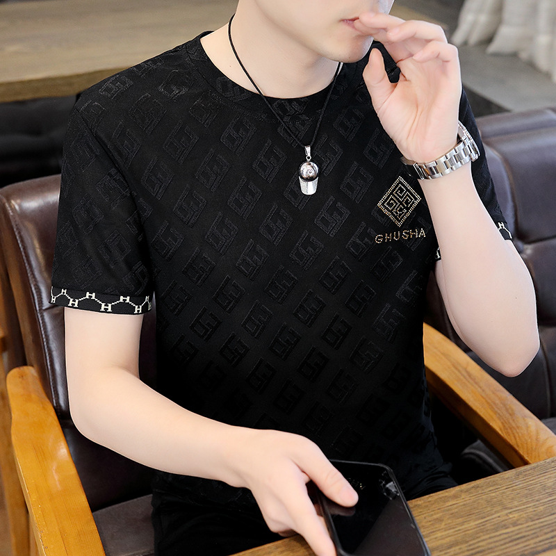 국경 간 대외 무역 배달 남성 여름 캐주얼 티셔츠 남성 청소년 패션 라운드 넥 짧은 소매 탑