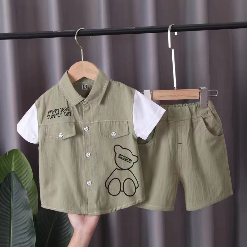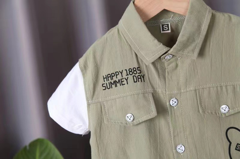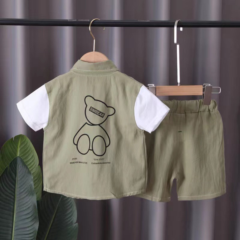 어린이 여름 세트 곰 가짜 두 조각 세트 중소 어린이 소년 패션 유행 투피스 세트 도매스토어 가기