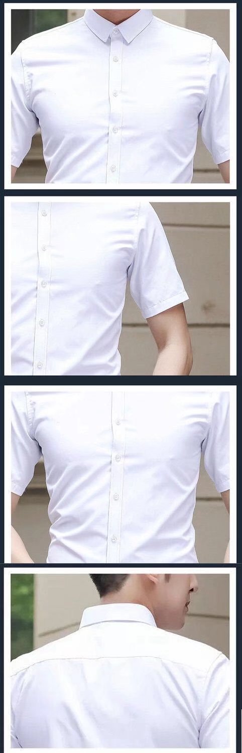 여름 얇은 흰색 셔츠 남성 셔츠 슬림 한국 스타일 청소년 단색 짧은 소매 셔츠 남성 비즈니스 도구스토어 가기