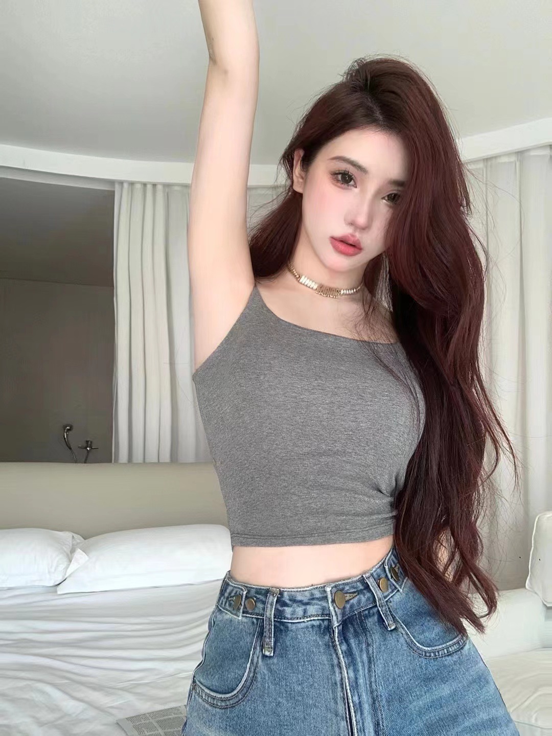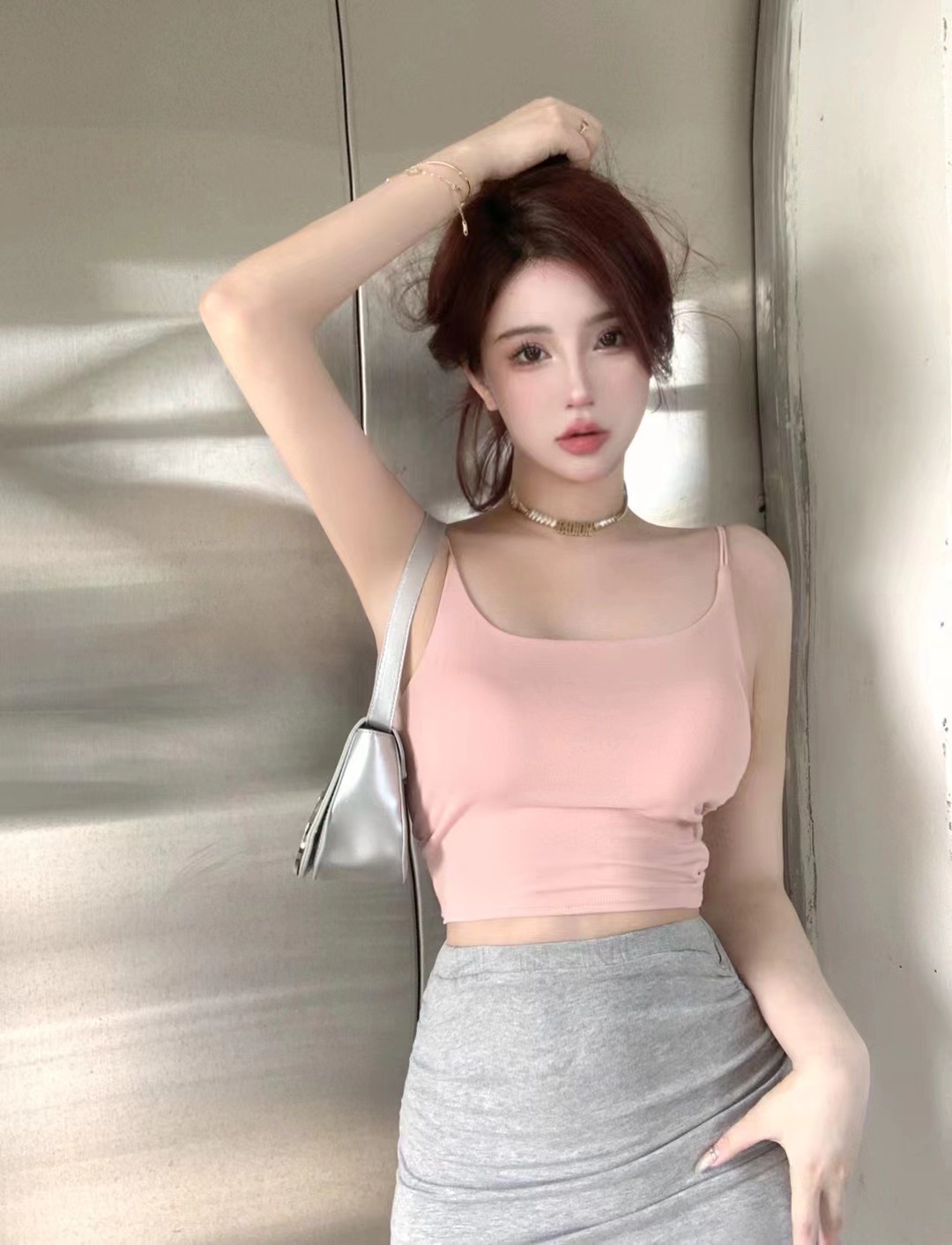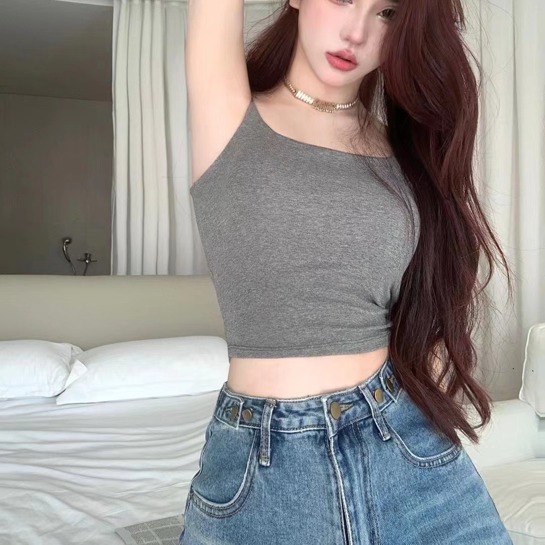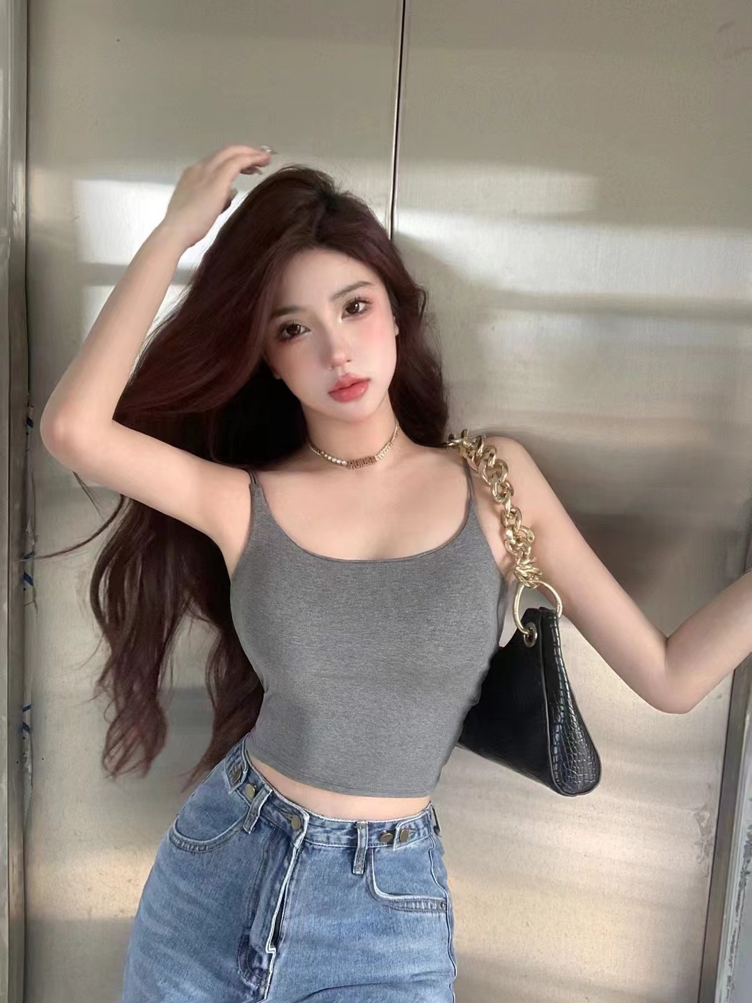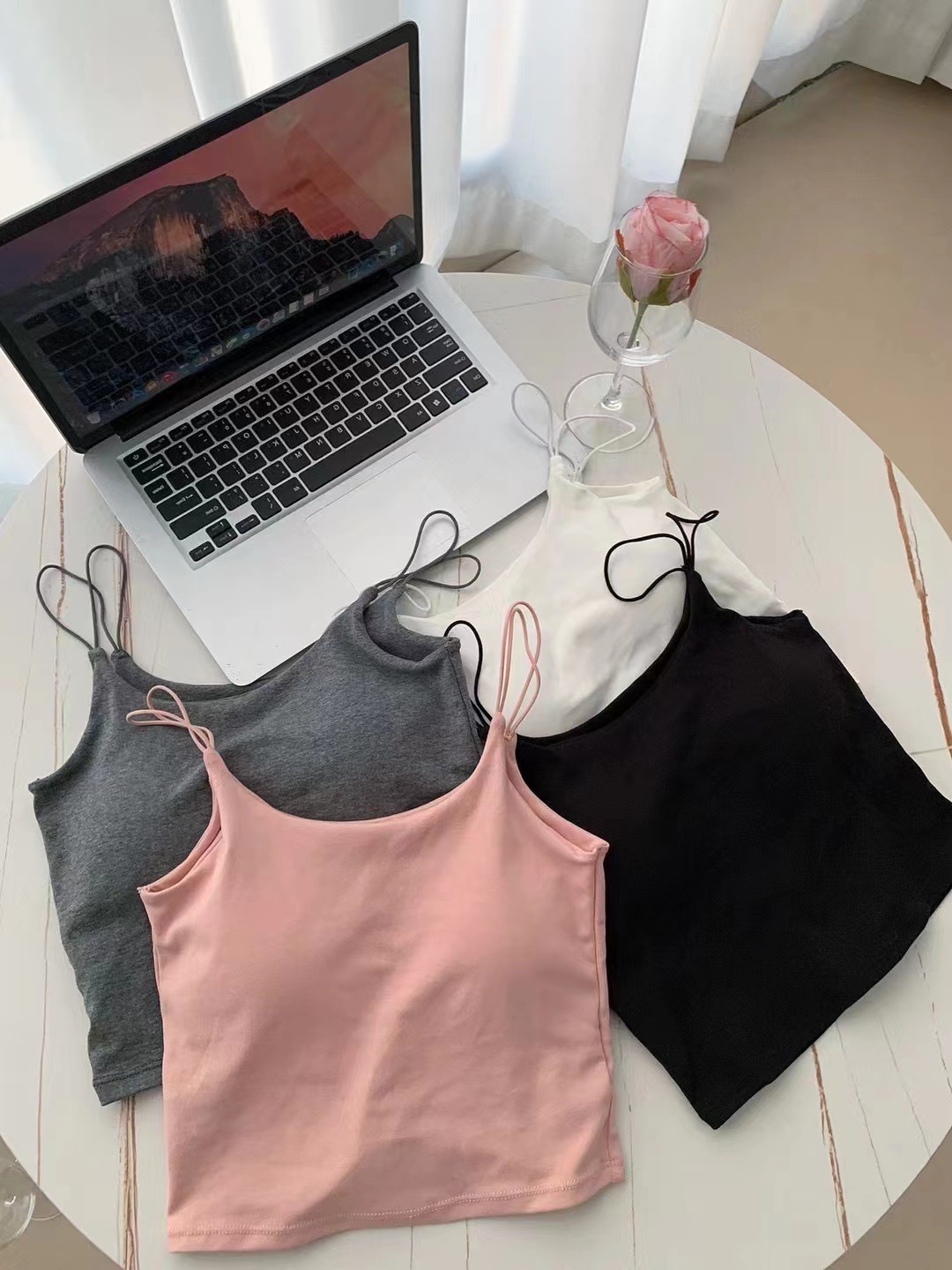 여성 면화 작은 캐미솔 가슴 패드 여름 뜨거운 소녀 내부와 외부 착용 짧은베이스 흰색 달콤하고 매운 탑스토어 가기
